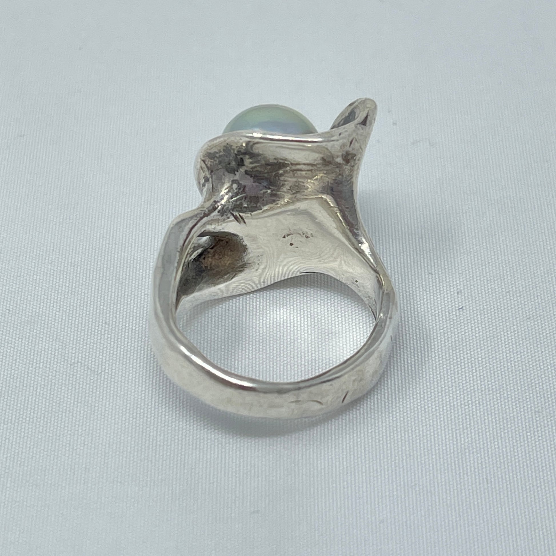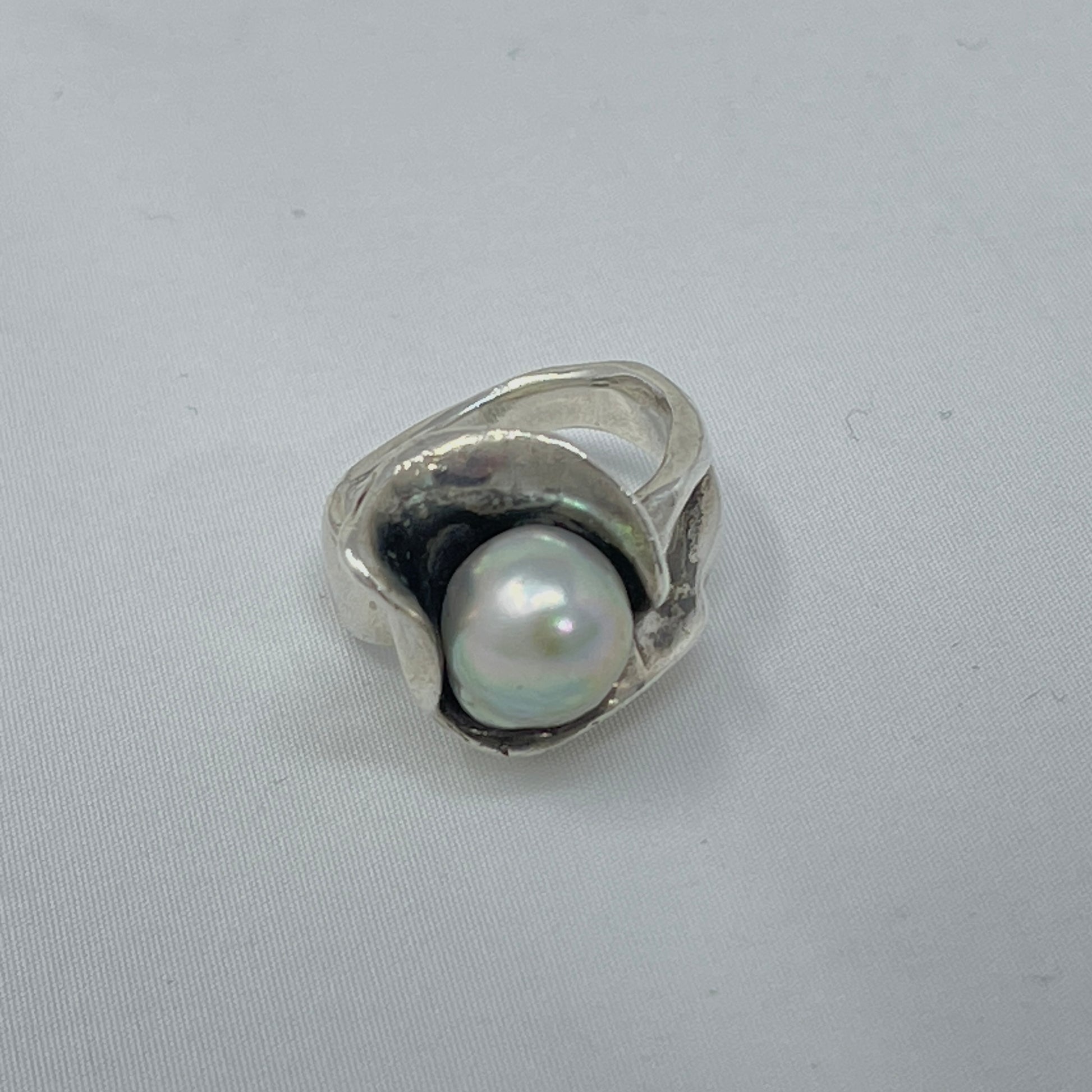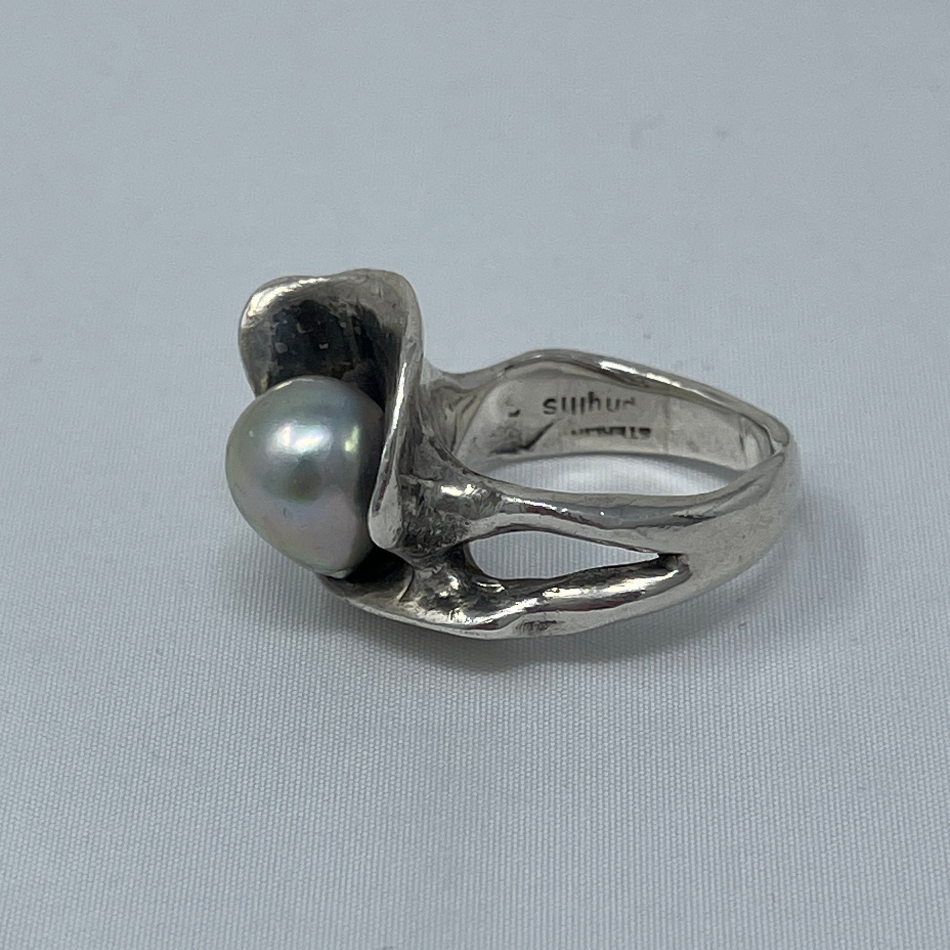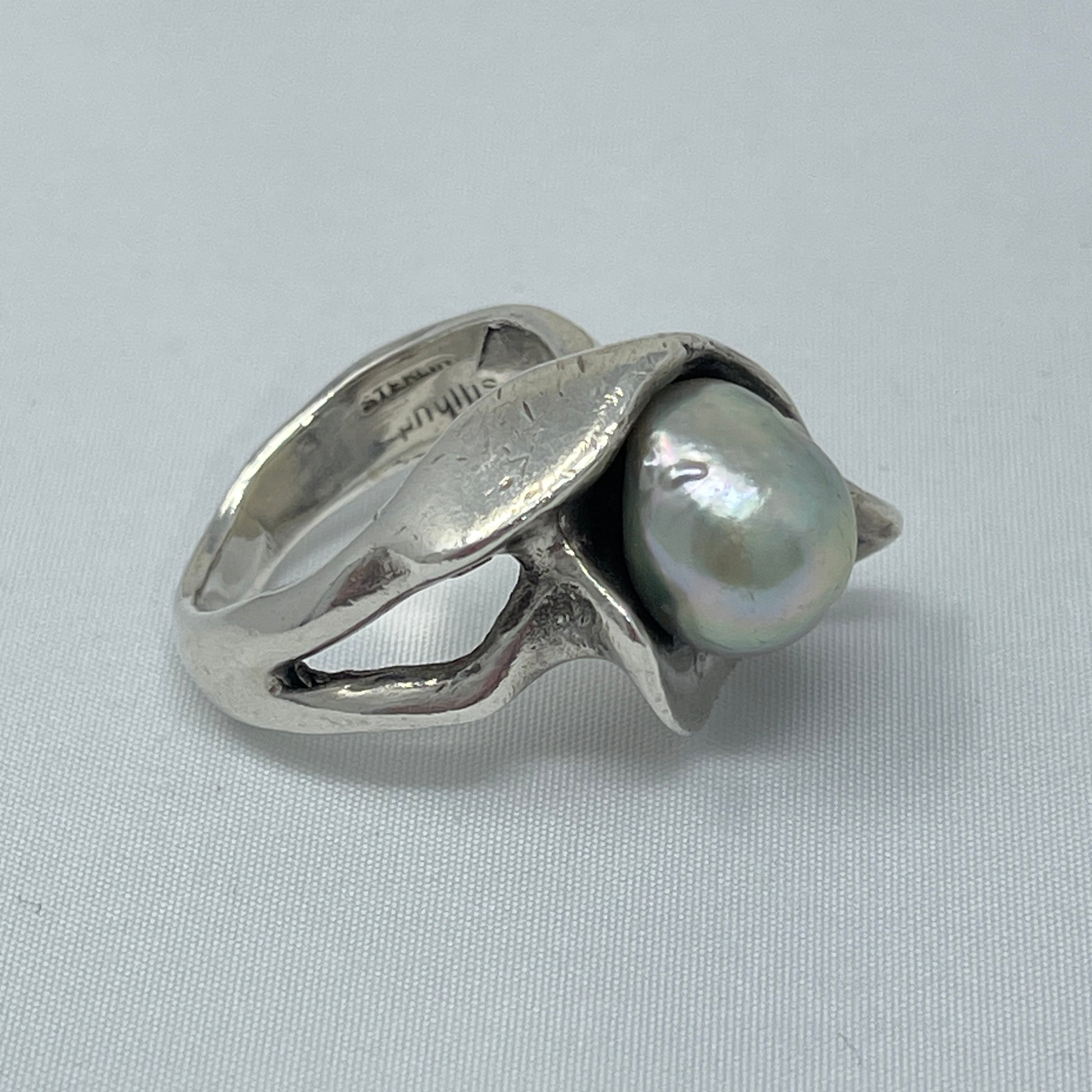 Estate Sterling Silver Clam with Pearl Ring by Phyllis Sklar