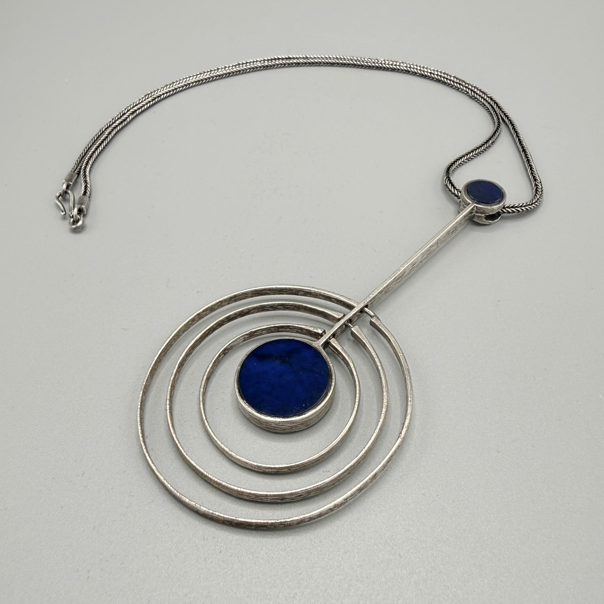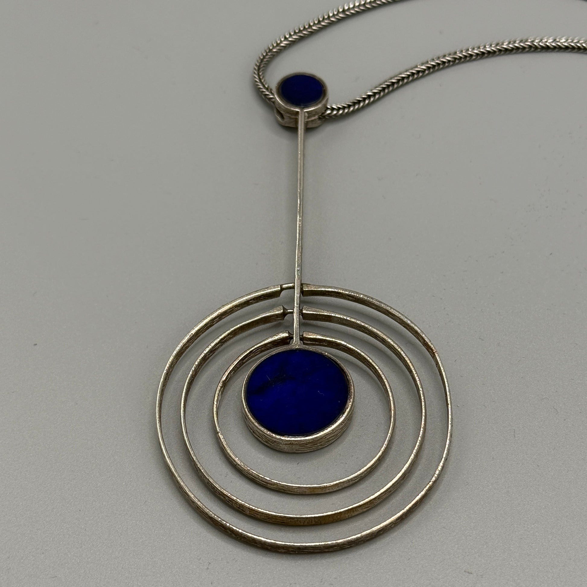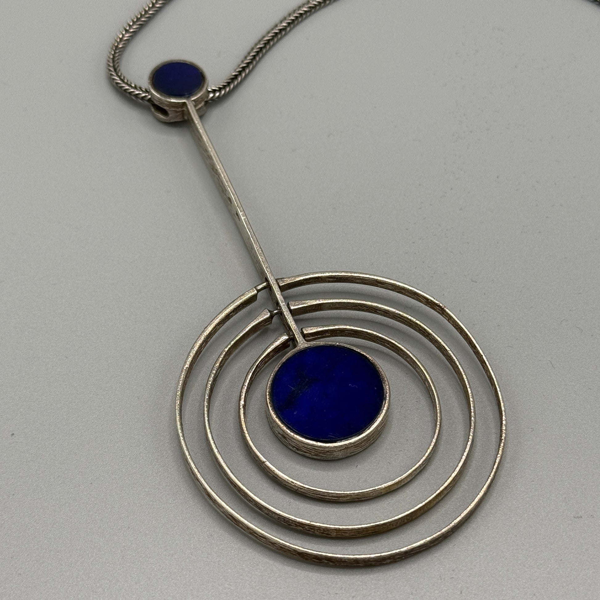 Estate Sterling Silver Modernist Three-Ring Concentric Mobile Pendant with Labradorite by Reelo