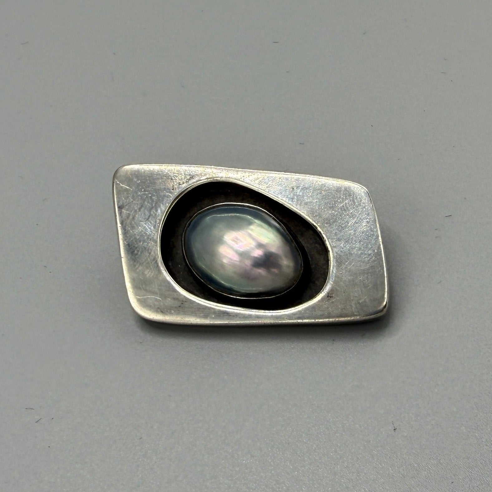 Estate Sterling Silver Modernist Brooch with Natural Blister Pearl