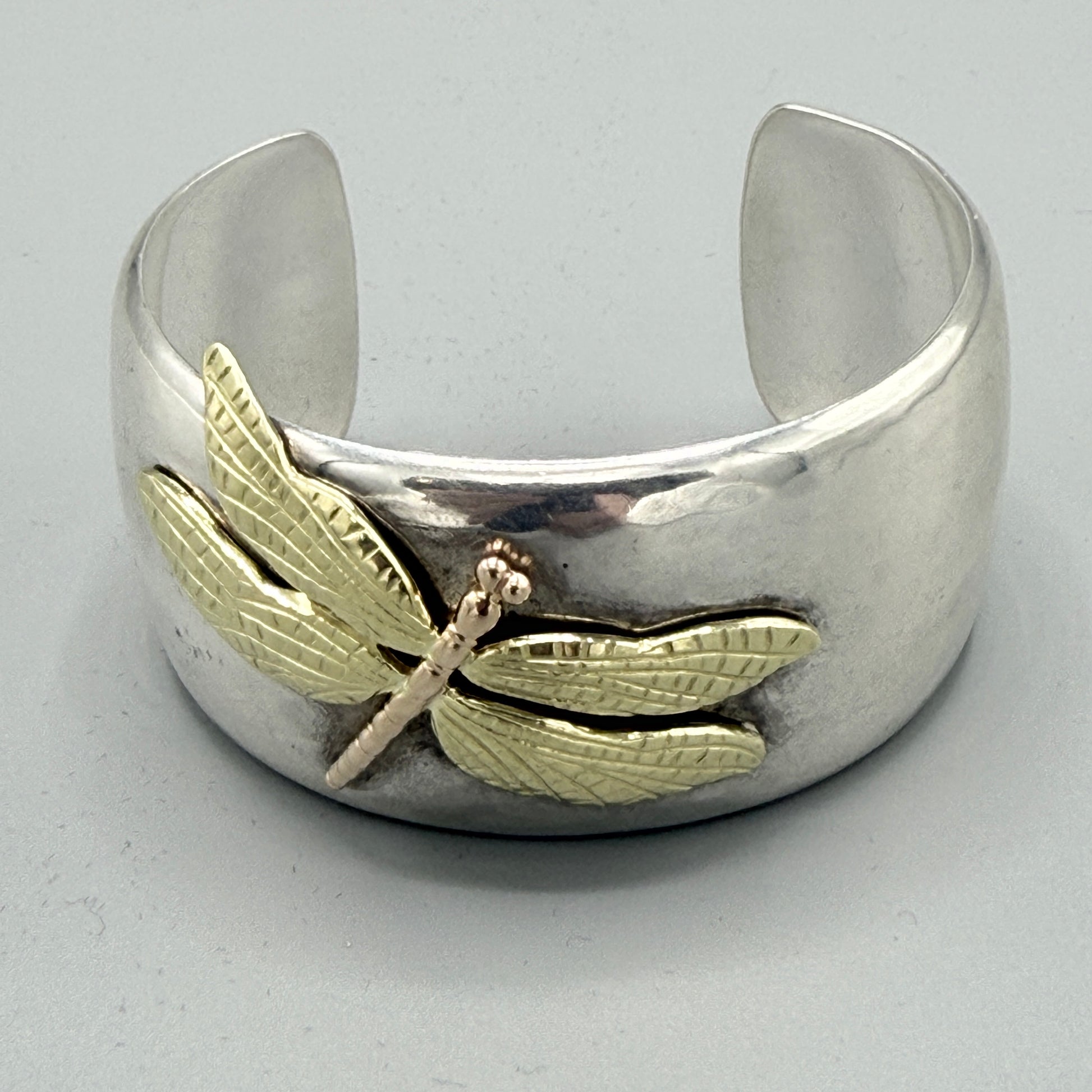 Estate Tiffany & Co. Sterling Silver and 18KT Rose and Yellow Gold Dragonfly Cuff