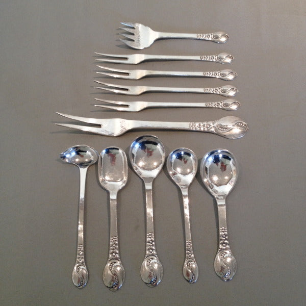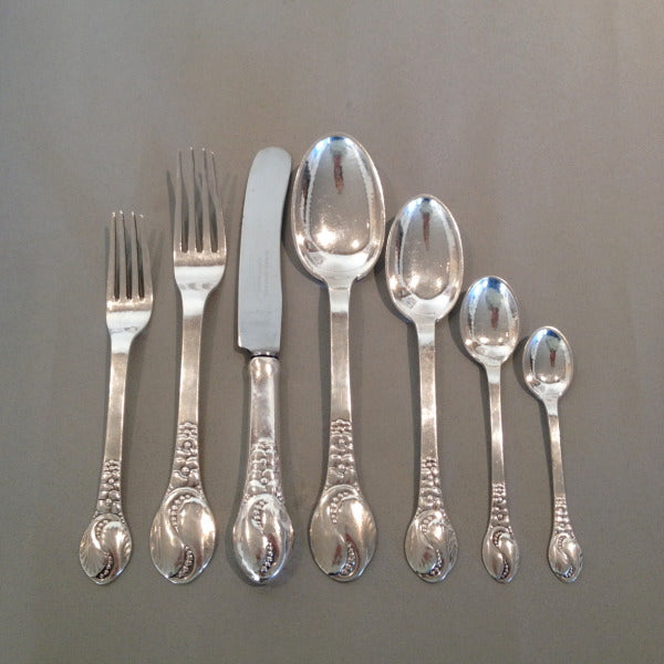 Evald Nielsen Complete Service of Twelve in the "Lupine" pattern. Comprised of a 7 Piece Place Setting and Many Servers, No. 12.