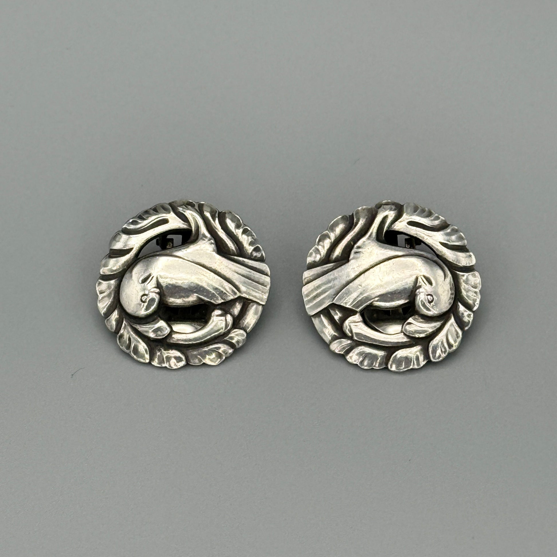 Estate Georg Jensen Sterling Silver "Bird" Earrings by Kristian Møhl-Hansen No. 66