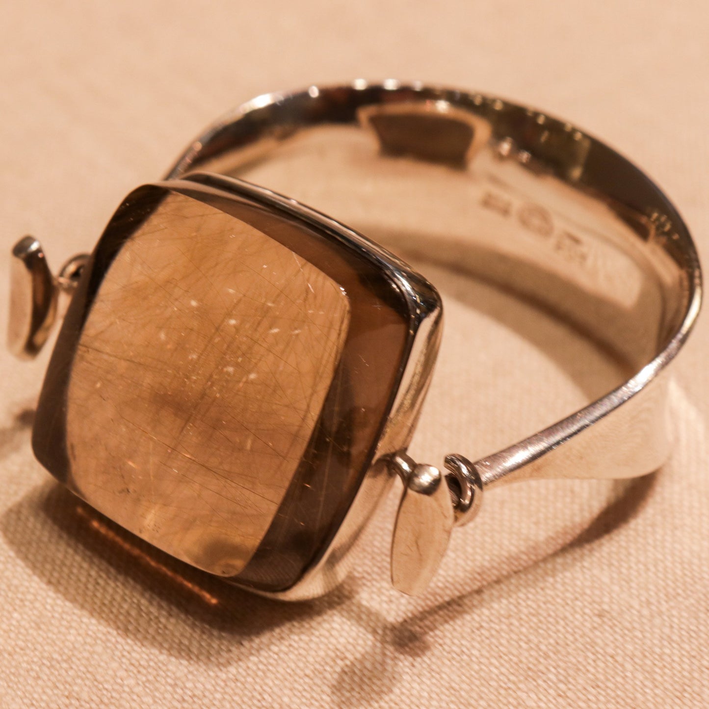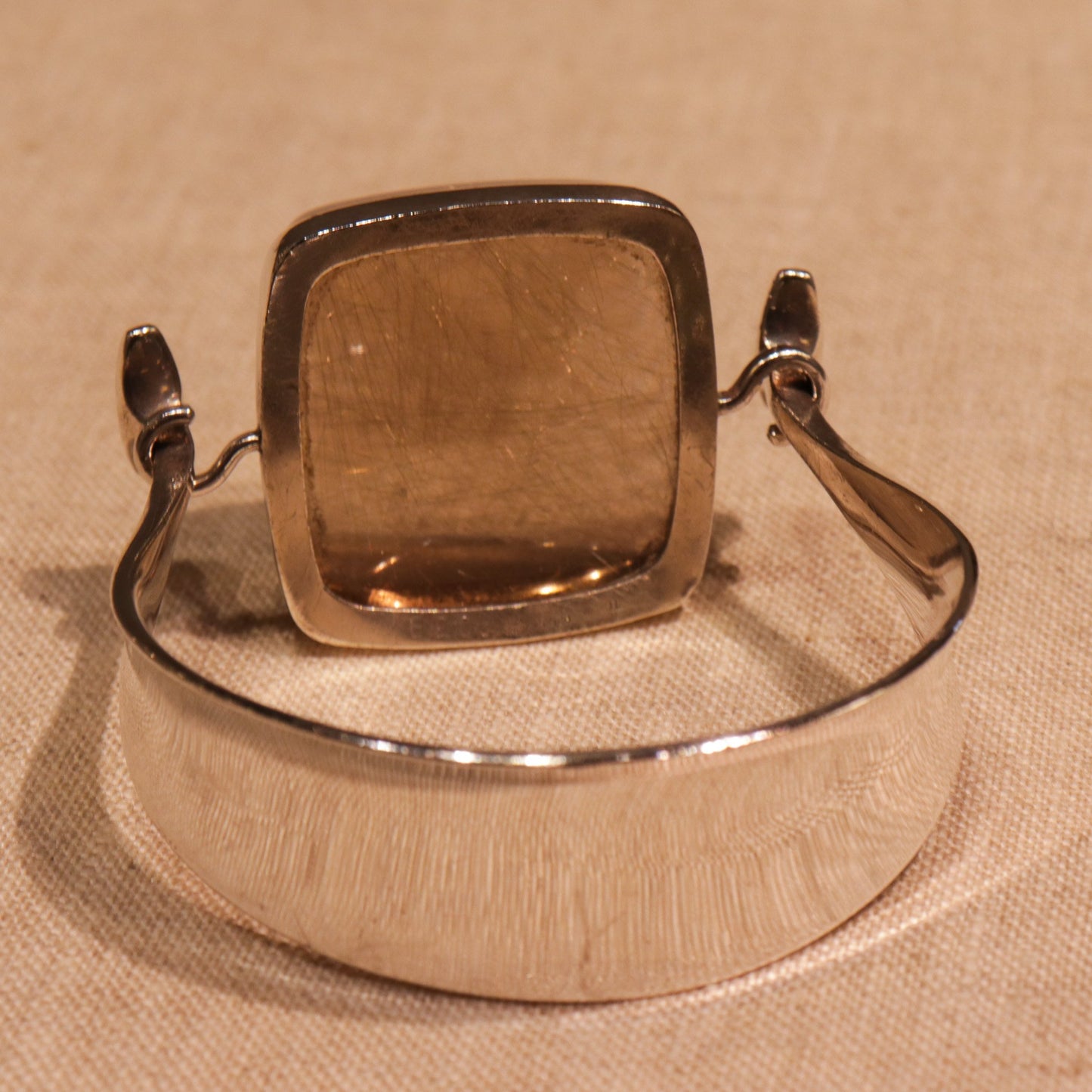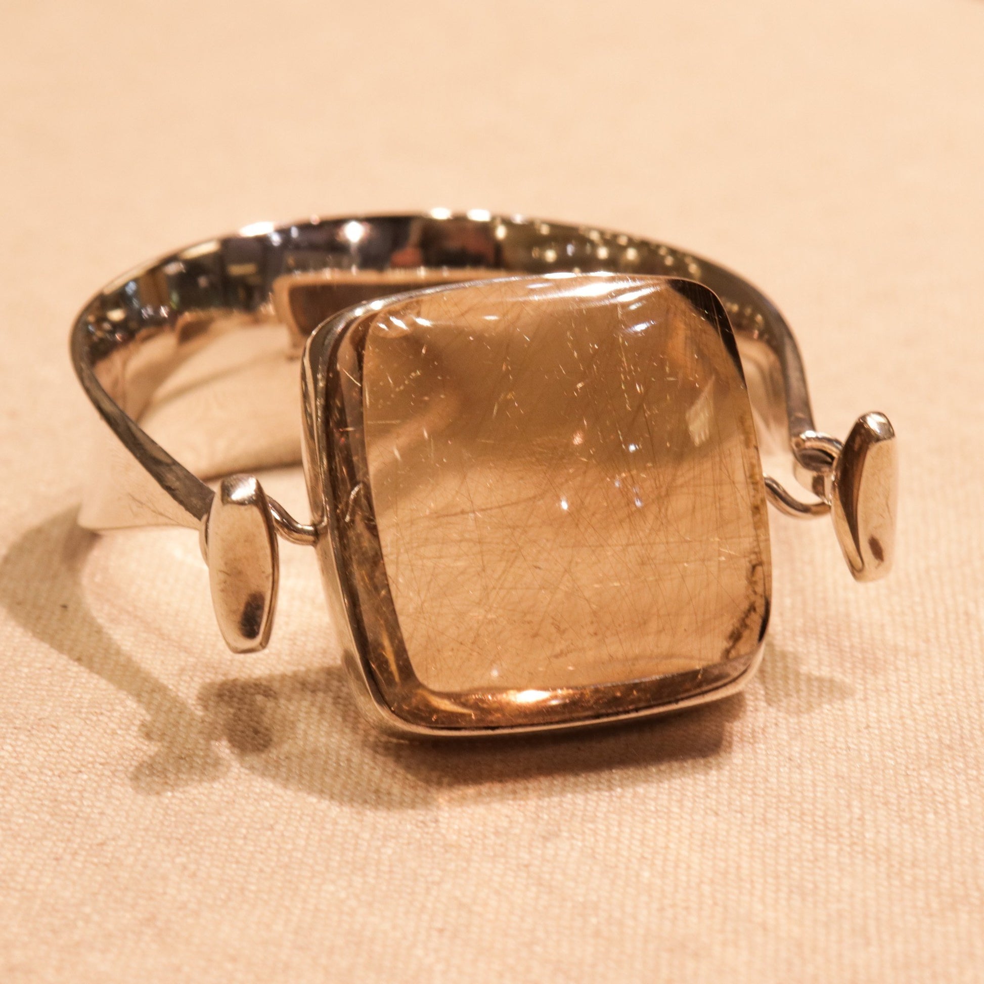 Georg Jensen Sterling Silver Cuff with Rutilated Quartz Center by Vivianna Torun No. 203B