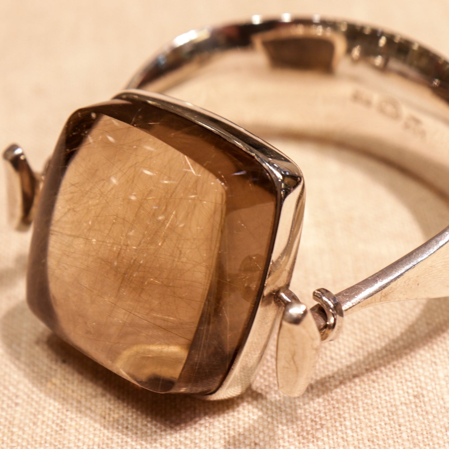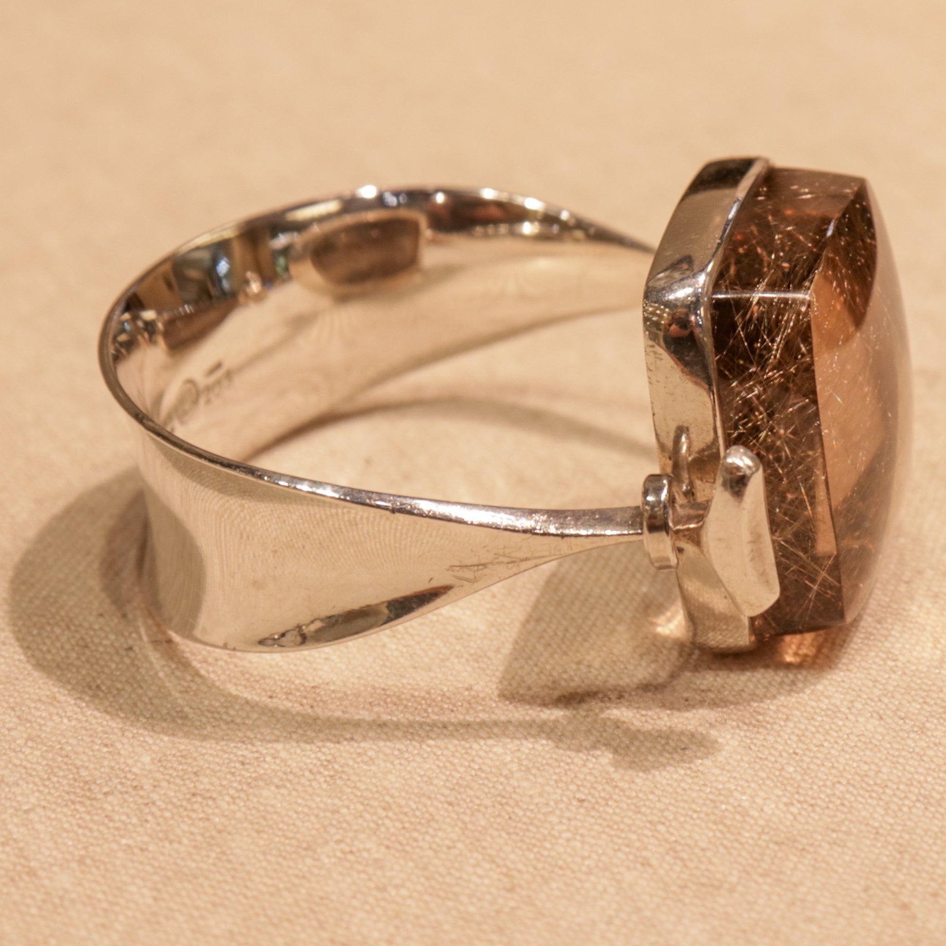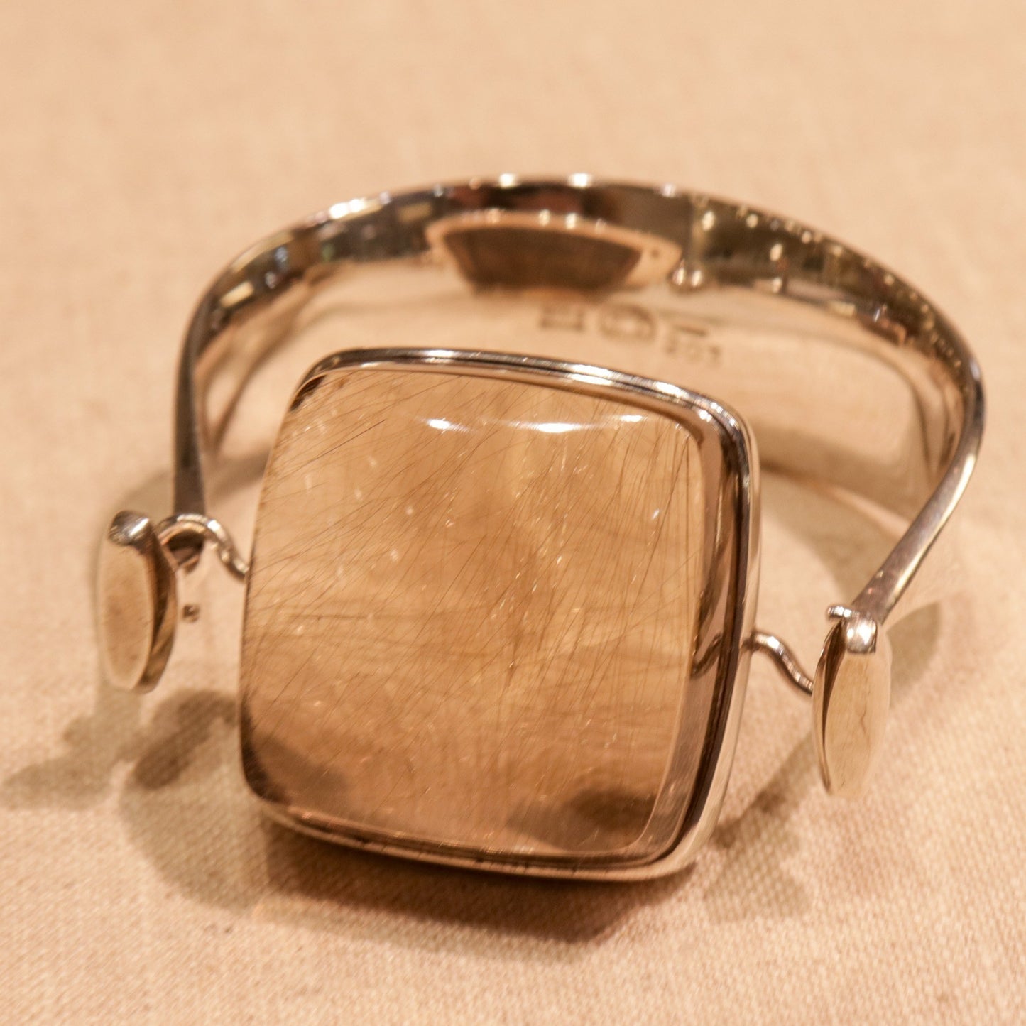 Georg Jensen Sterling Silver Cuff with Rutilated Quartz Center by Vivianna Torun No. 203B