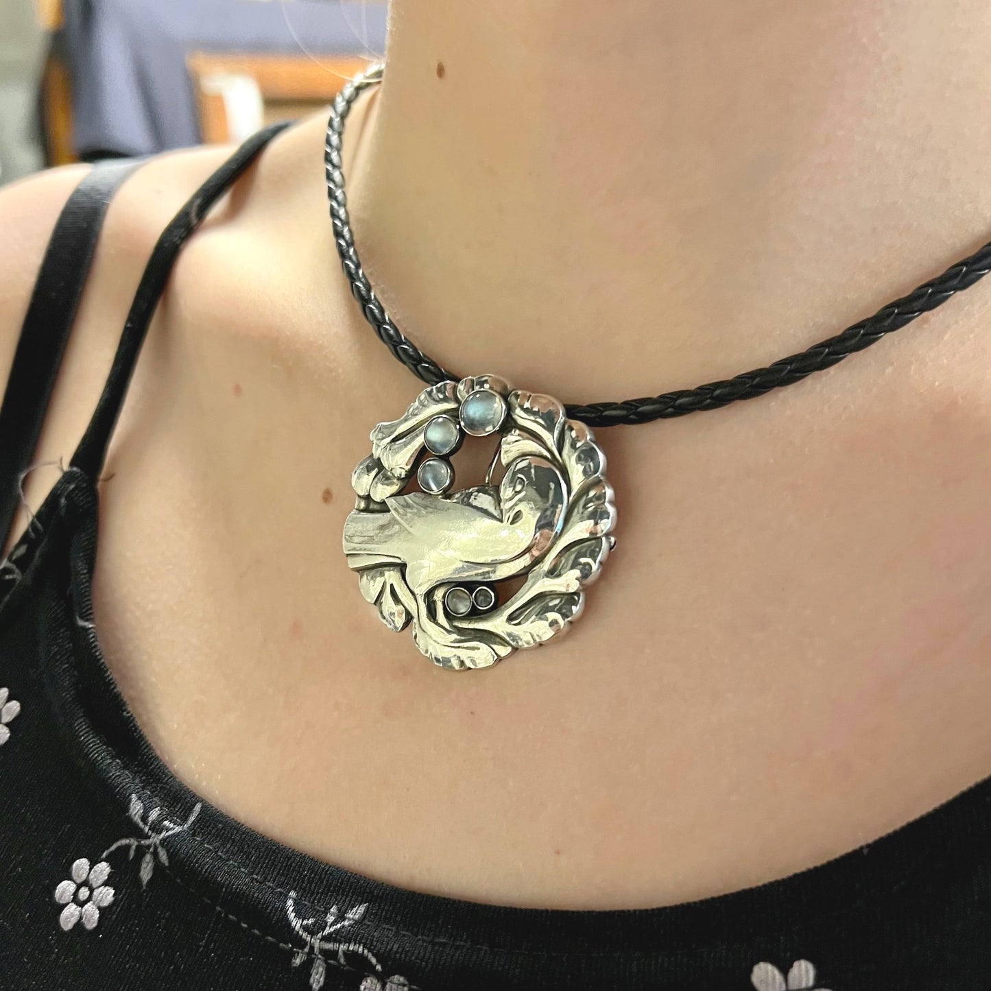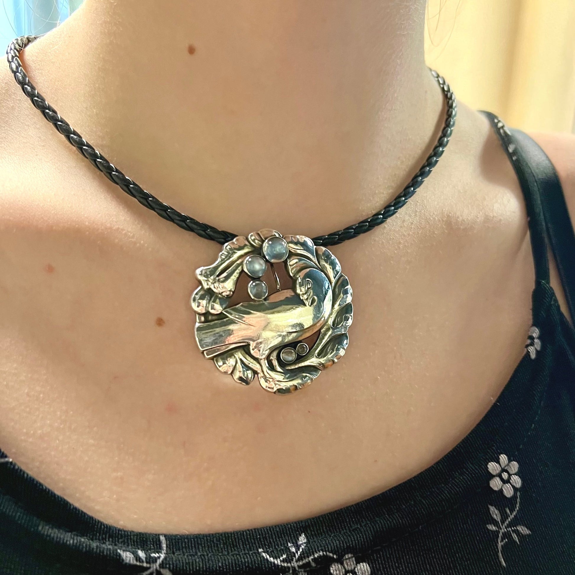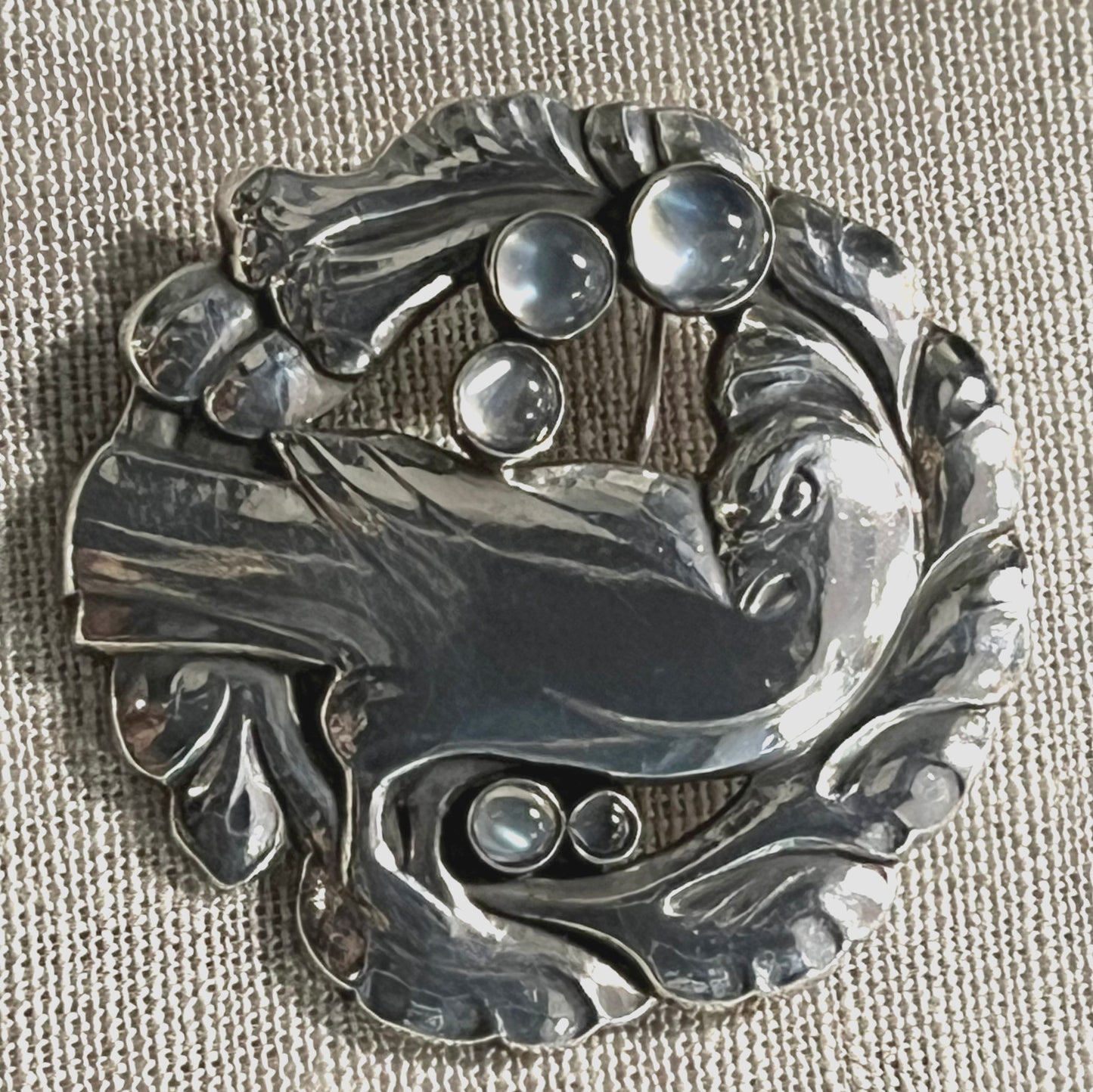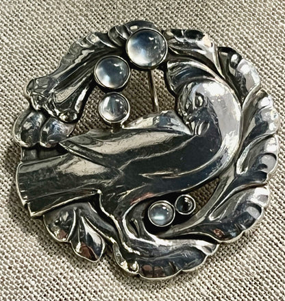 Georg Jensen Large Dove Brooch with Moonstone Design No. 123 by Kristian Møhl-Hansen