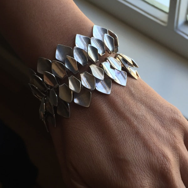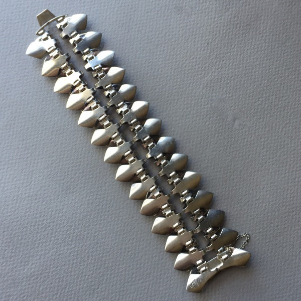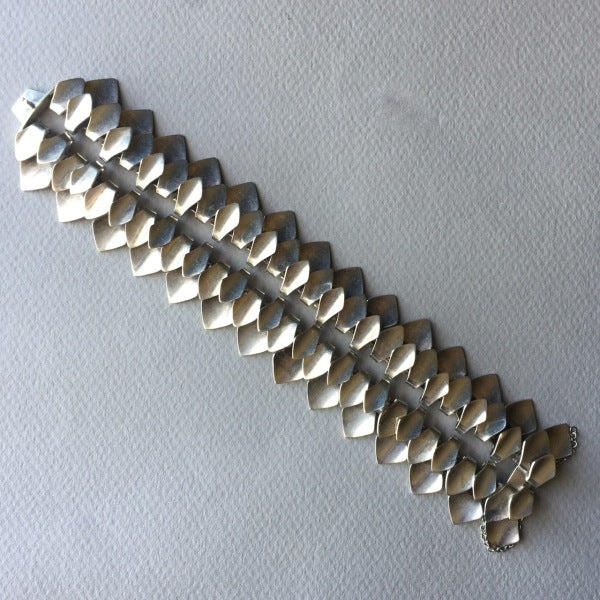 Very rare design with dramatic layers of highly polished handmade sterling silver segments that create a 3-D effect.