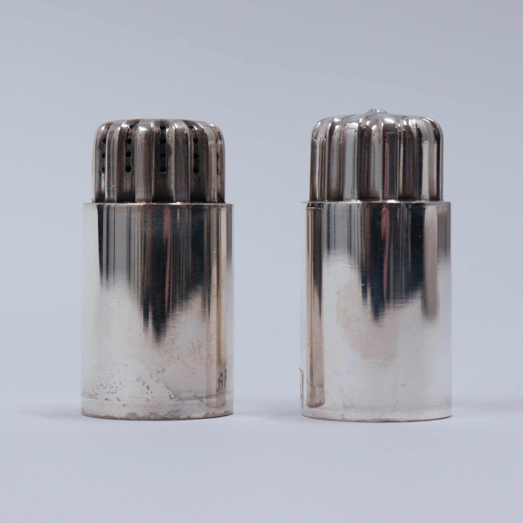 Pair of Georg Jensen Salt and Pepper Shaker by Sigvard Bernadotte. Sterling silver design No. 834.