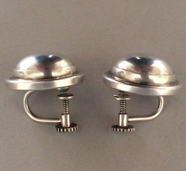 Pair of Sterling Silver screw back earrings, with dome shape. c. Post 1945