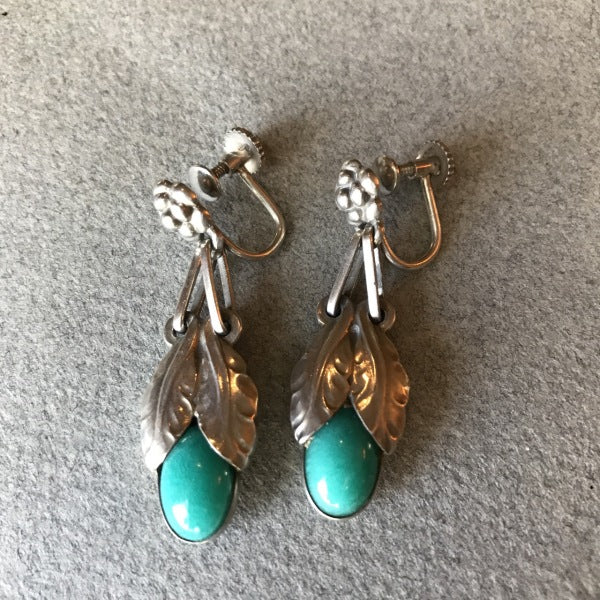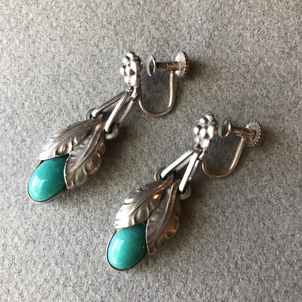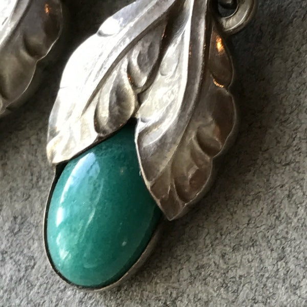 Georg Jensen Sterling Silver Art Nouveau Earrings With Amazonite No. 23