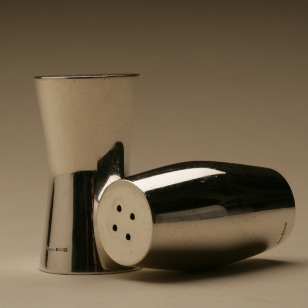 Estate Georg Jensen Sterling Silver Modernist Barrel Salt & Pepper Set by Hans Henriksen No. 1031