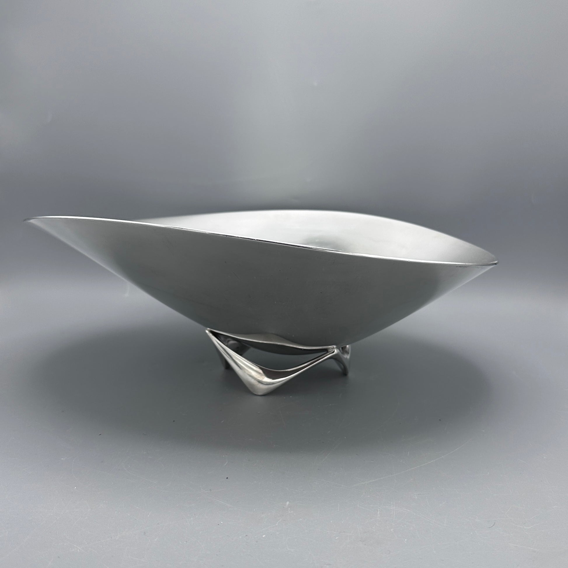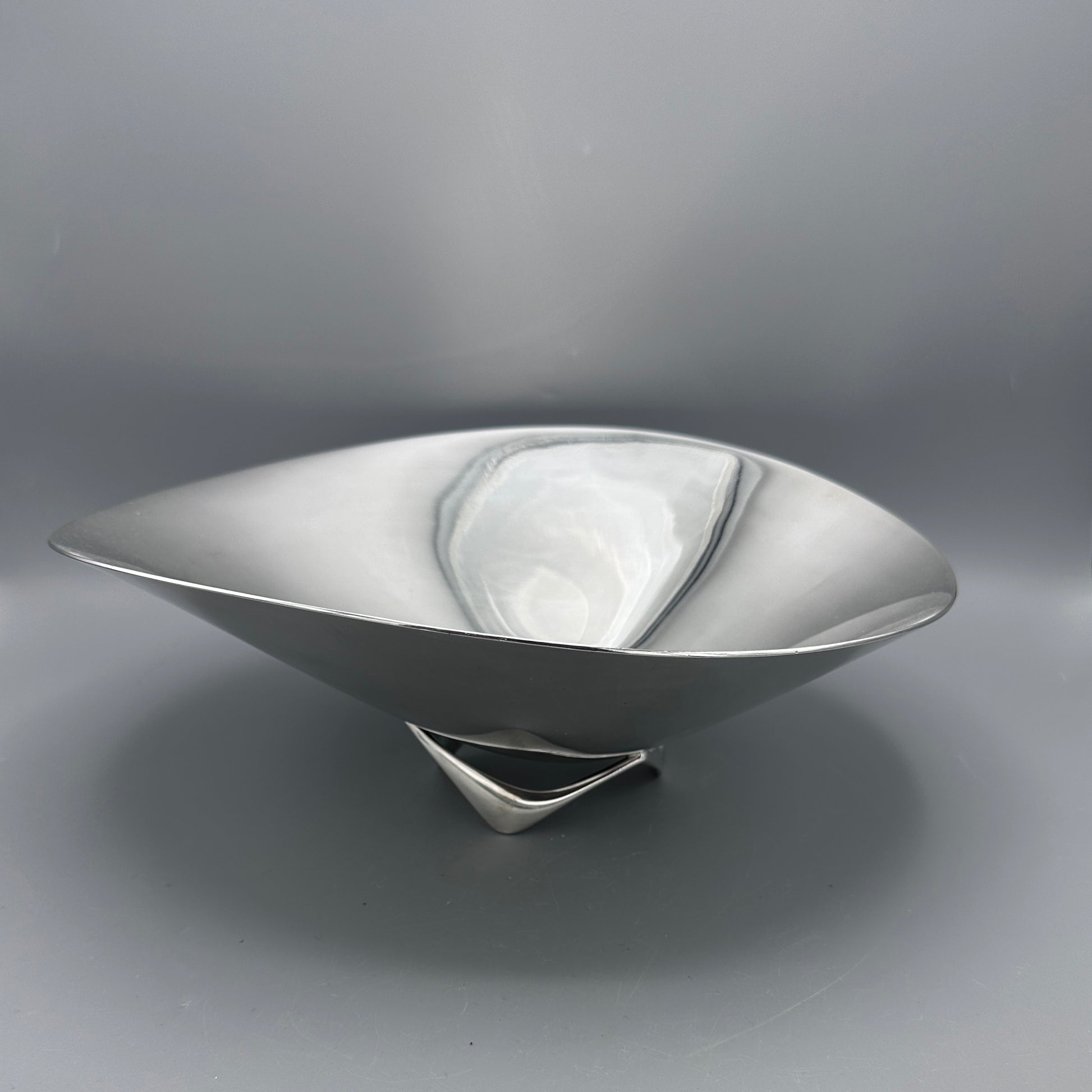 Sturdy, heavy bowl in an iconic modernist design. Elegant amorphic bowl set on a solid silver three-pointed base.