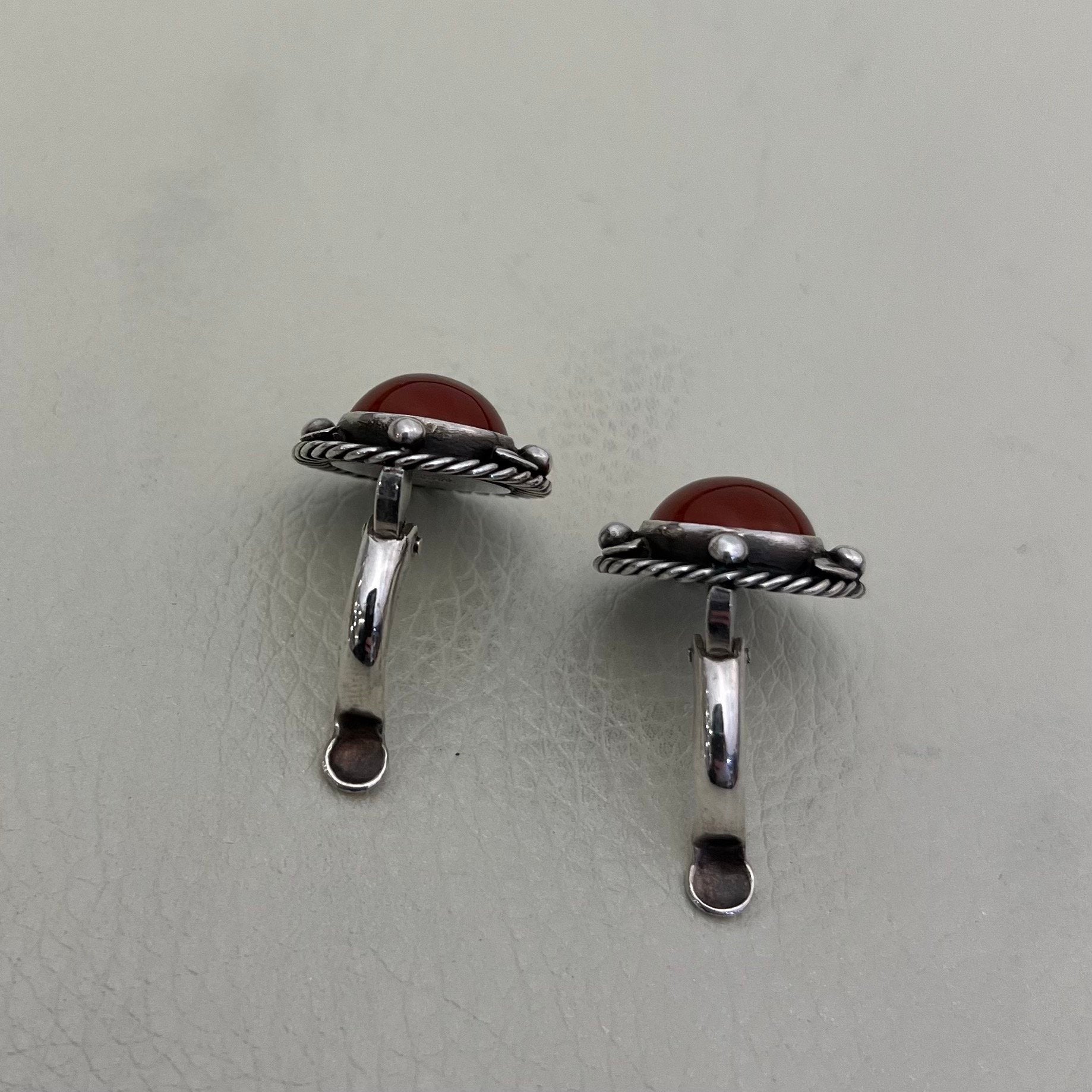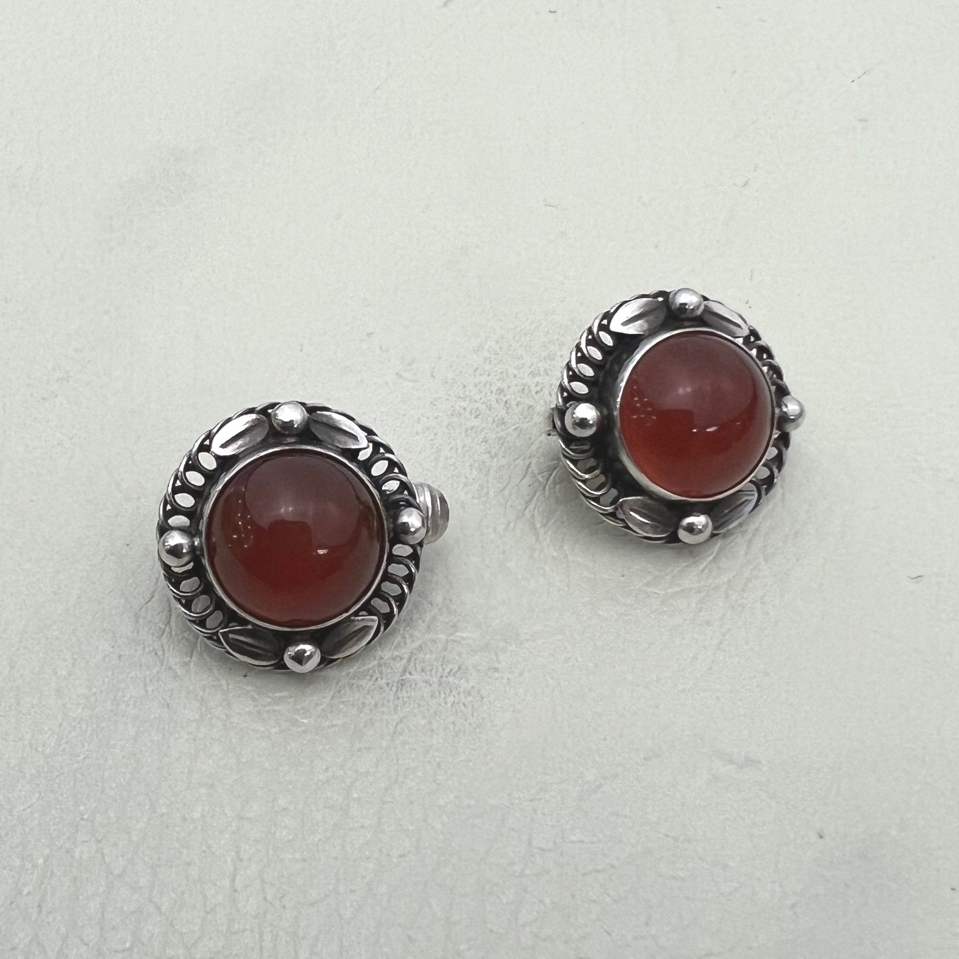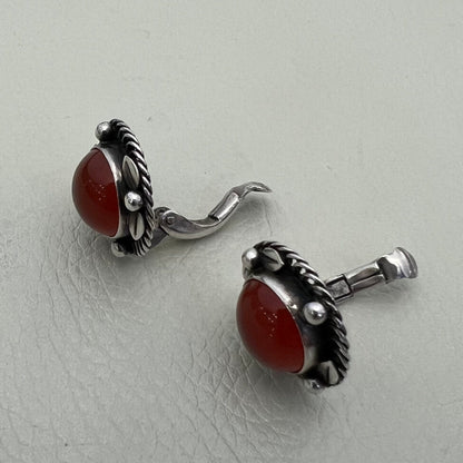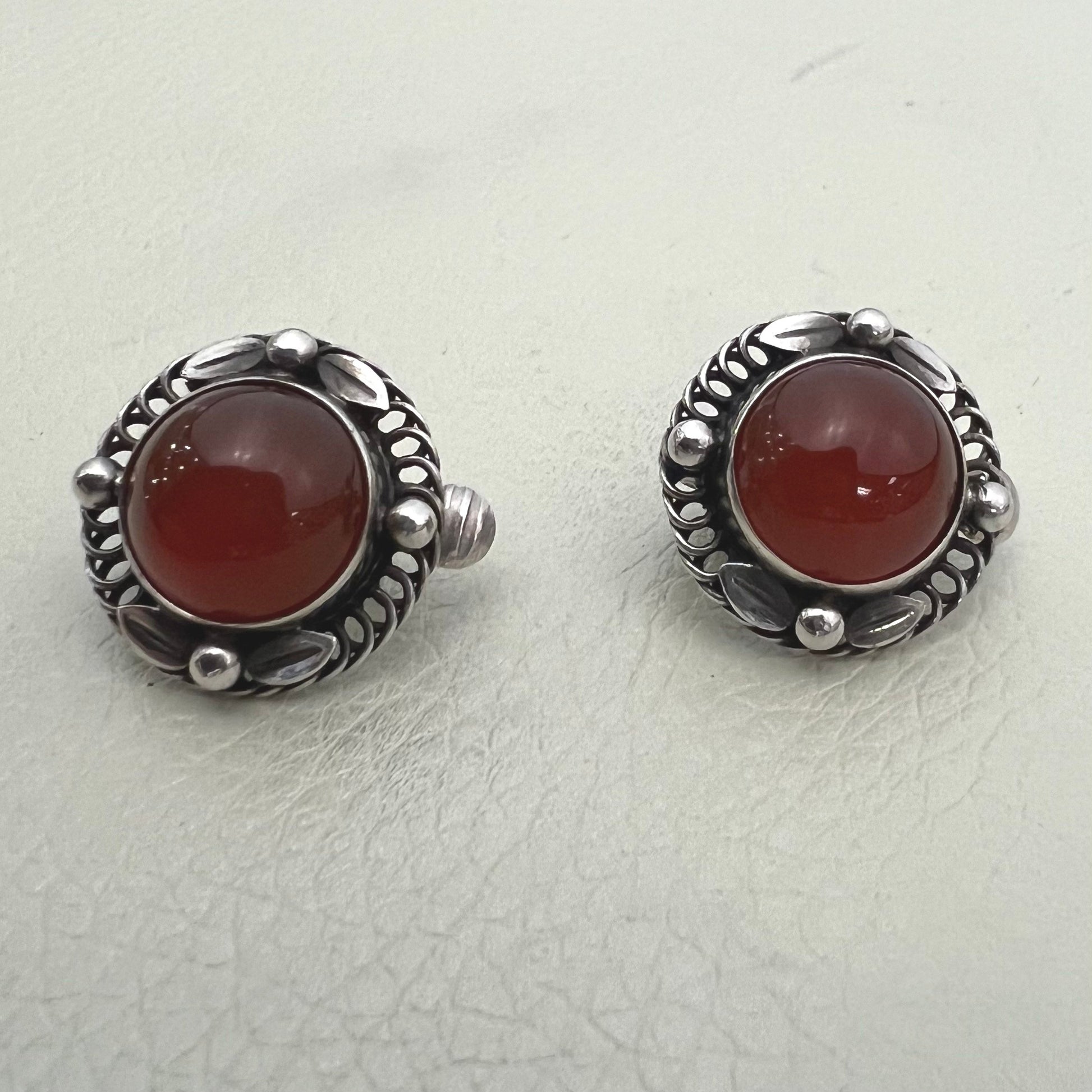 Georg Jensen Sterling Silver Clip-On Earrings Design No. 39 with Carnelian Cabochon Stones