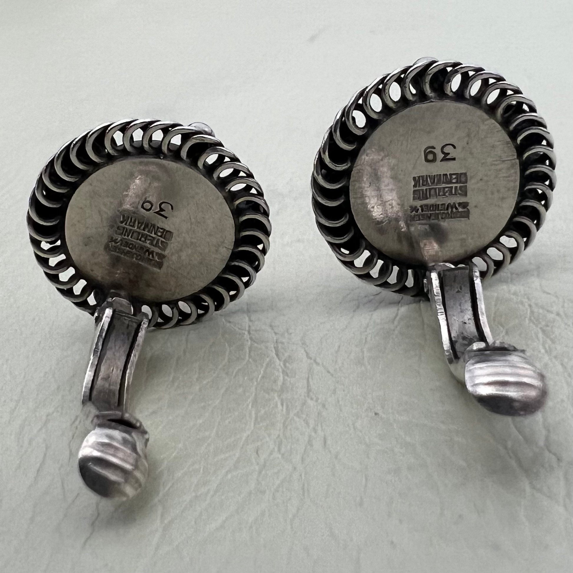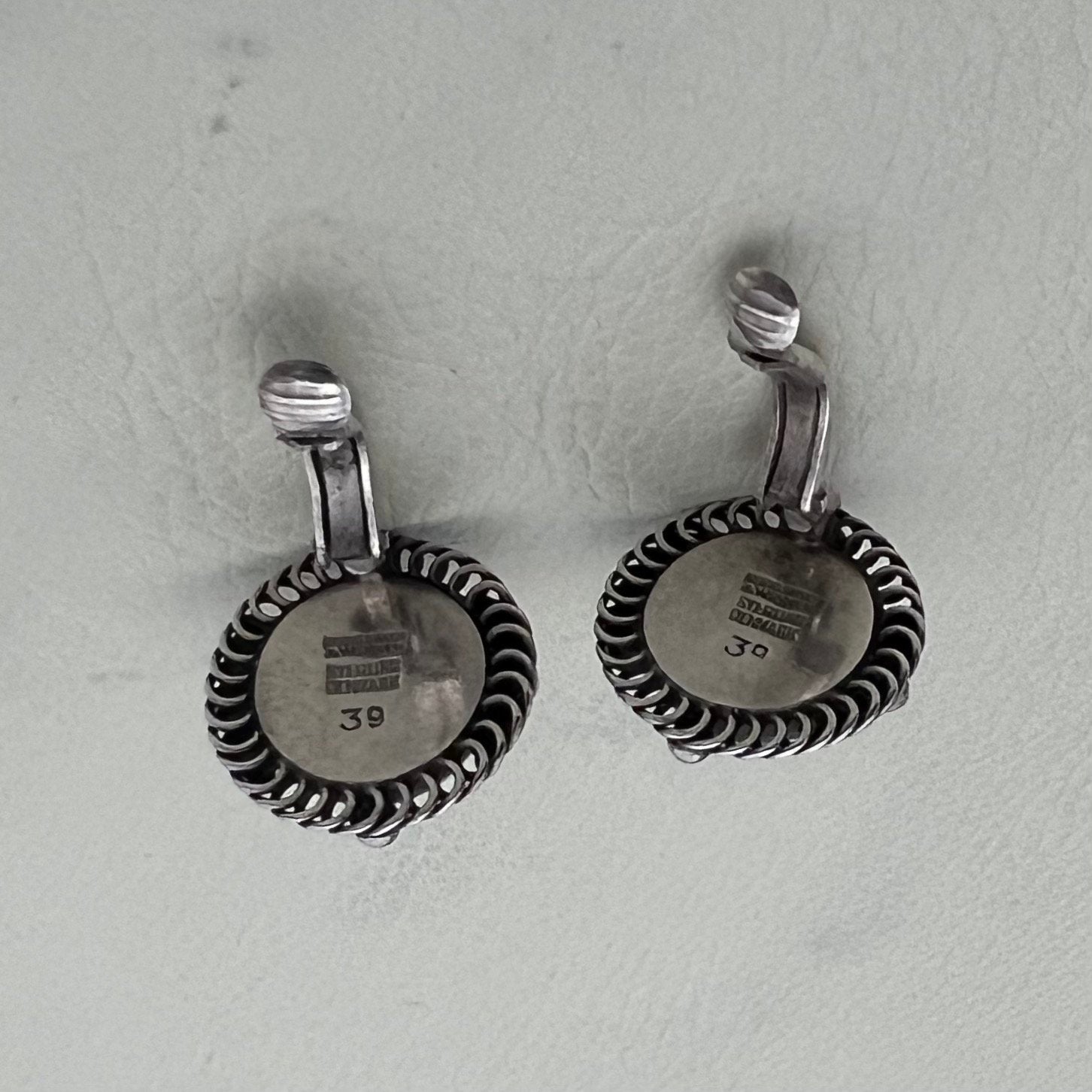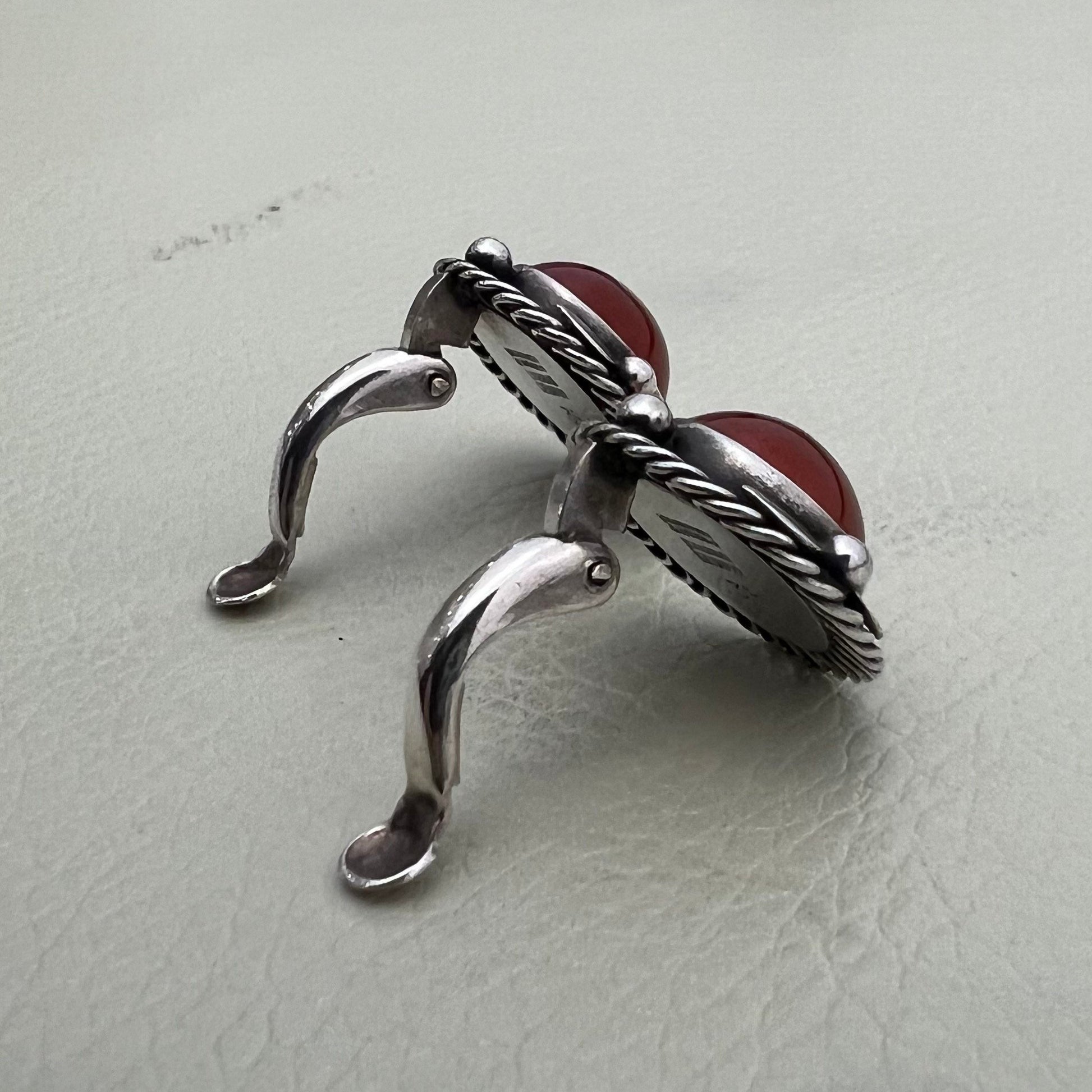 Georg Jensen Sterling Silver Clip-On Earrings Design No. 39 with Carnelian Cabochon Stones