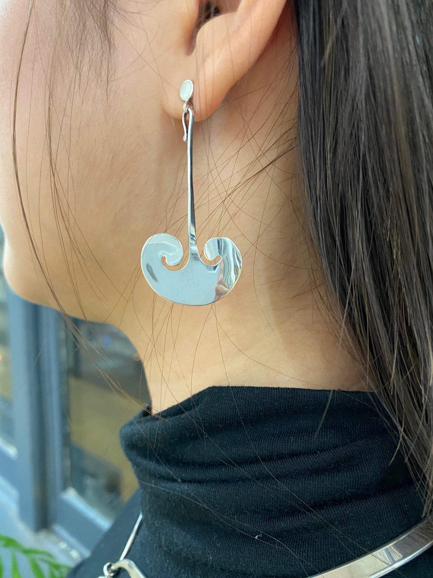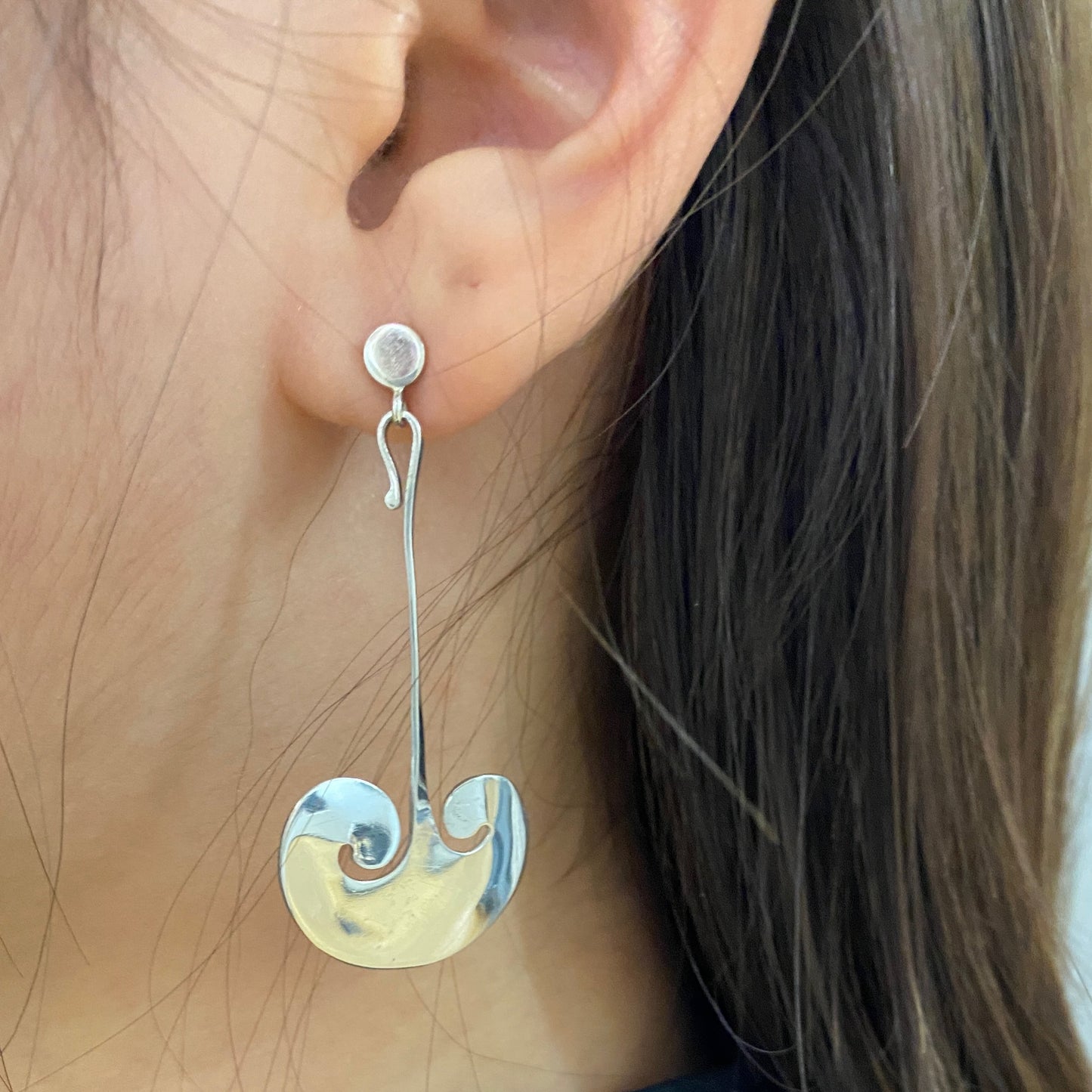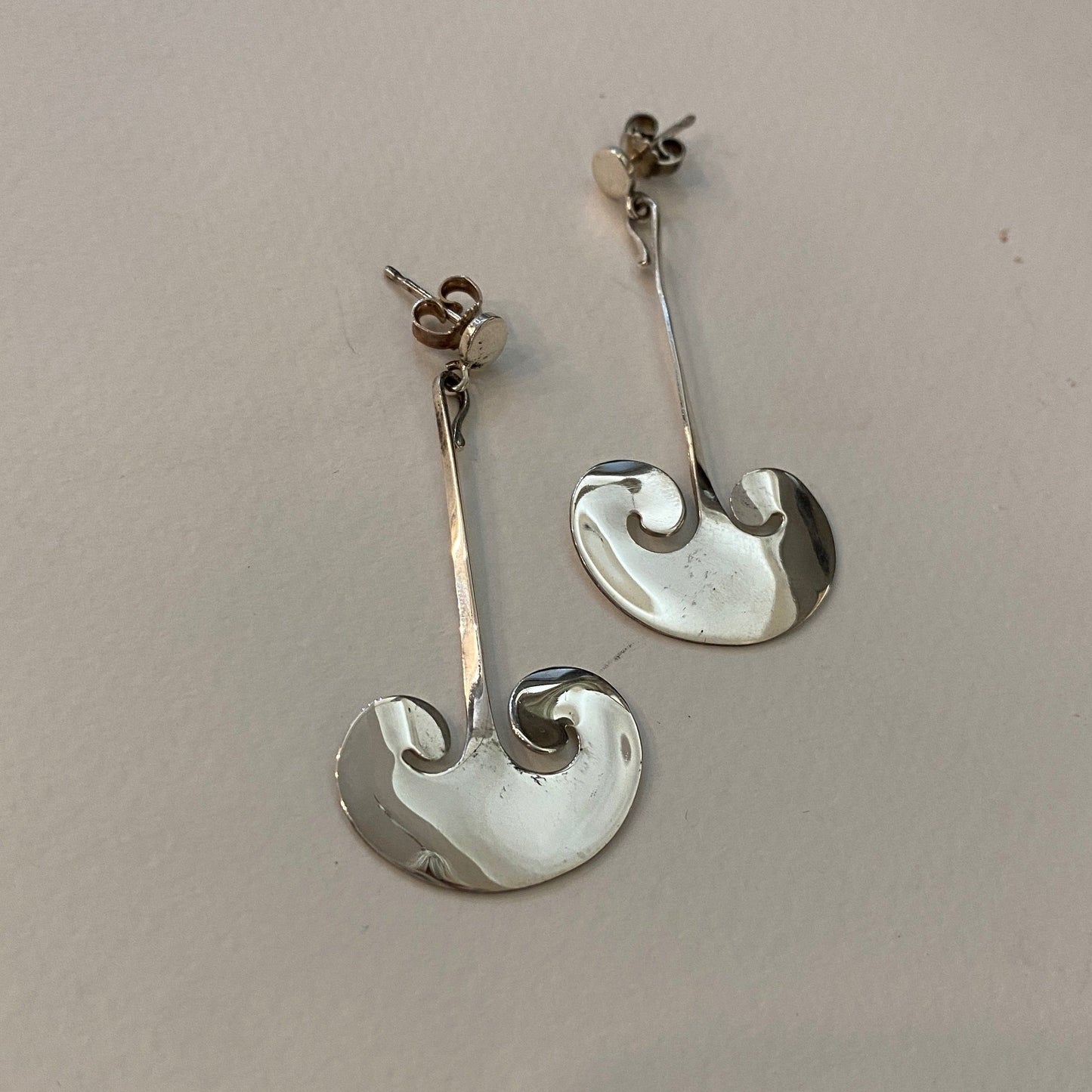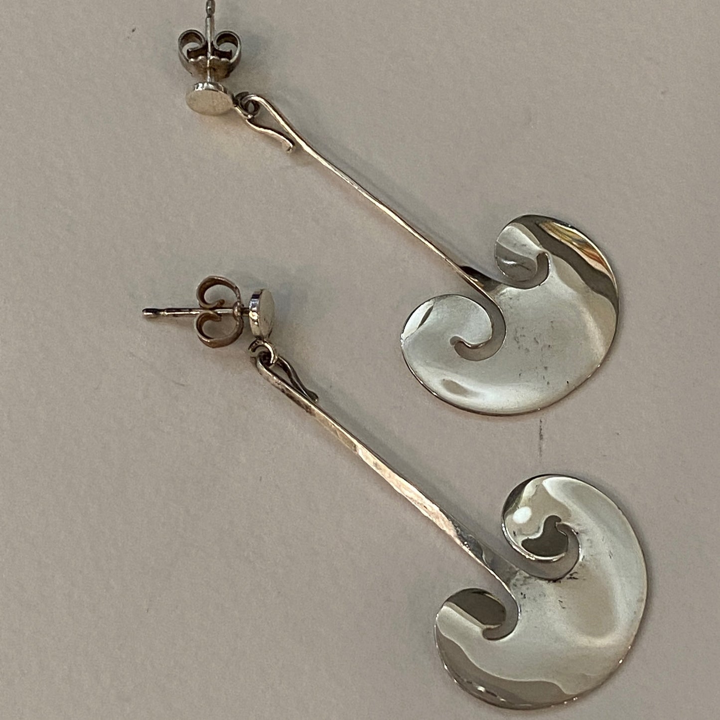 Georg Jensen Sterling Silver Hand Wrought Dangle Earrings by Vivianna Torun, Design 372B