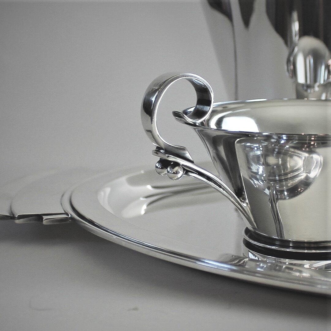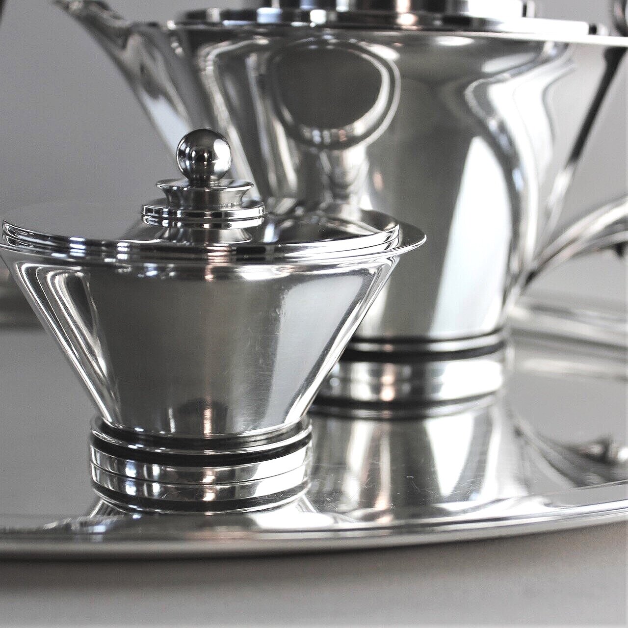Georg Jensen Sterling Silver Pyramid Tea & Coffee Suite with Tray, No.600A by Harald Nielsen