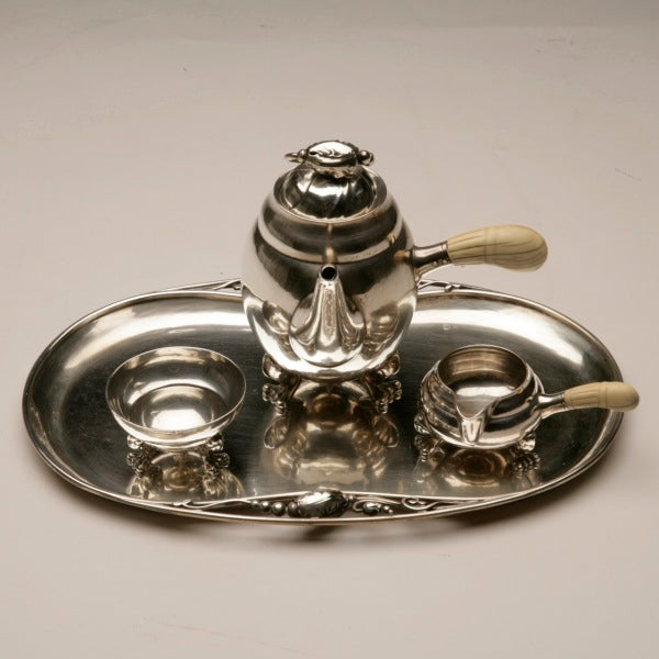 Estate Georg Jensen Sterling Silver Mini Bachelor "Blossom" Coffee Set No. 2H on Tray No. 2P