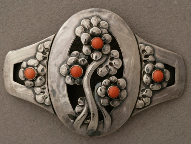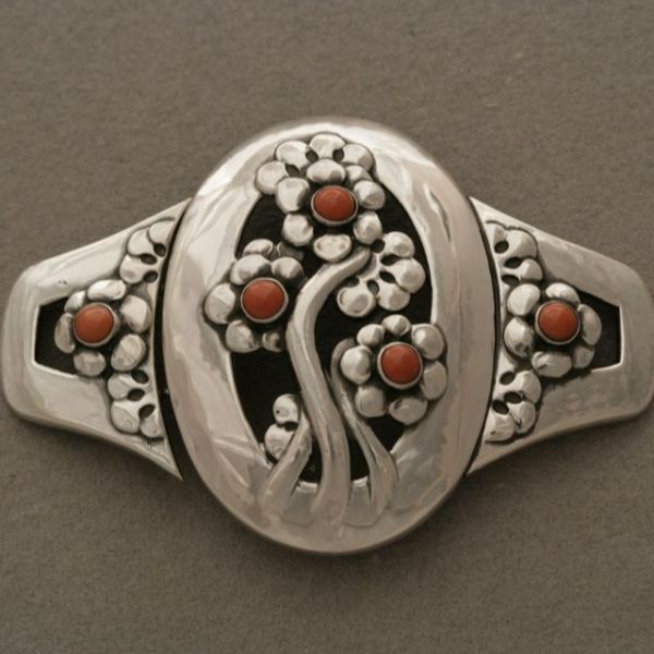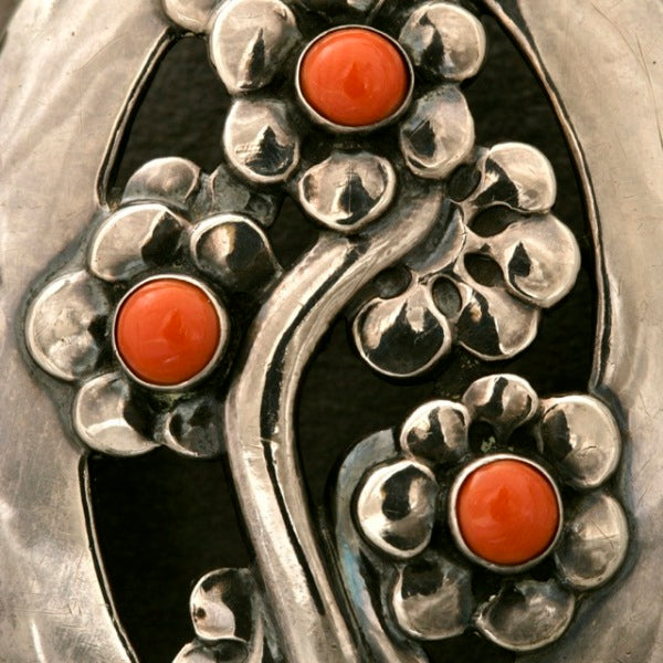 Estate Georg Jensen Sterling Silver Museum Quality Antique Belt Buckle with Coral