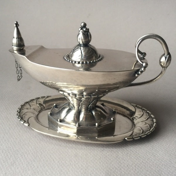 Georg Jensen Sterling Silver Oil Lamp and Tray No. 12