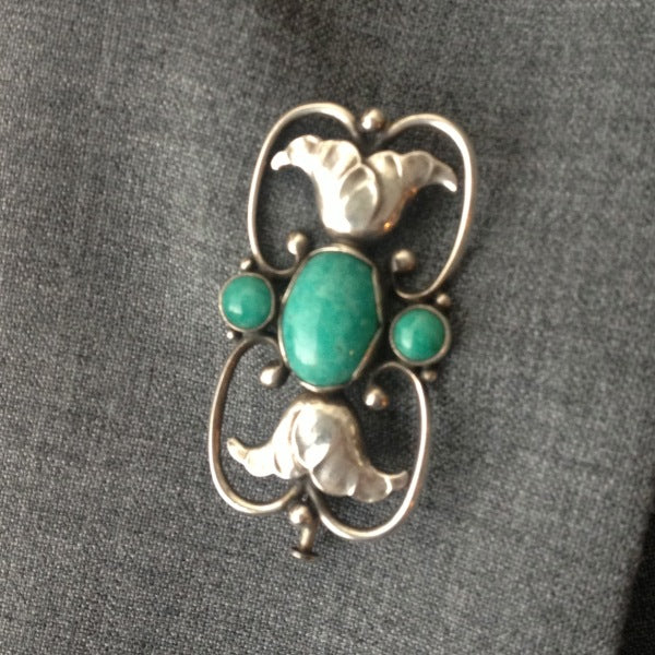 Georg Jensen Sterling Silver Rare Turquoise Brooch No. 236A