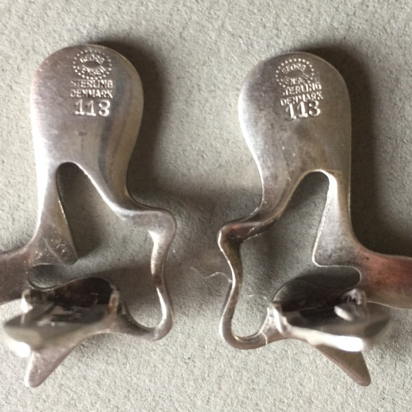 Georg Jensen's well known and highly sought after, "Splash" Modernist design earrings designed by Henning Koppel, No. 118.