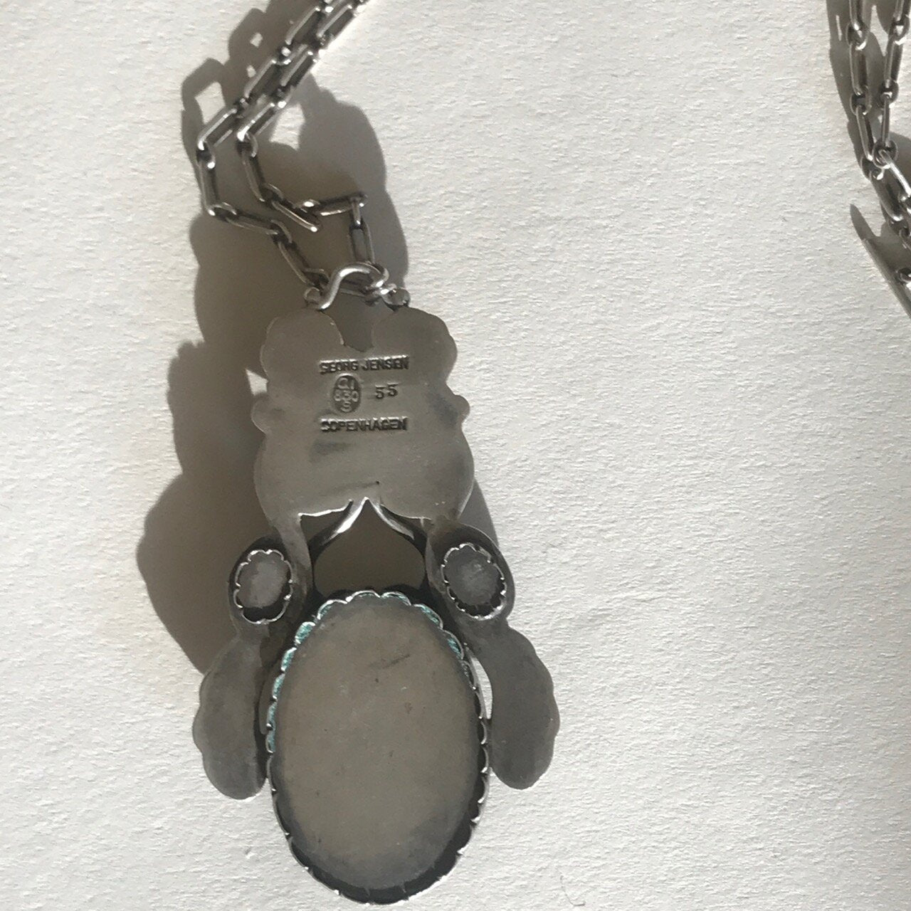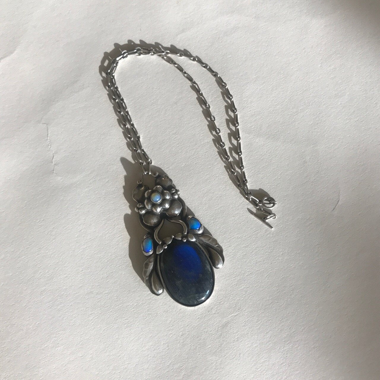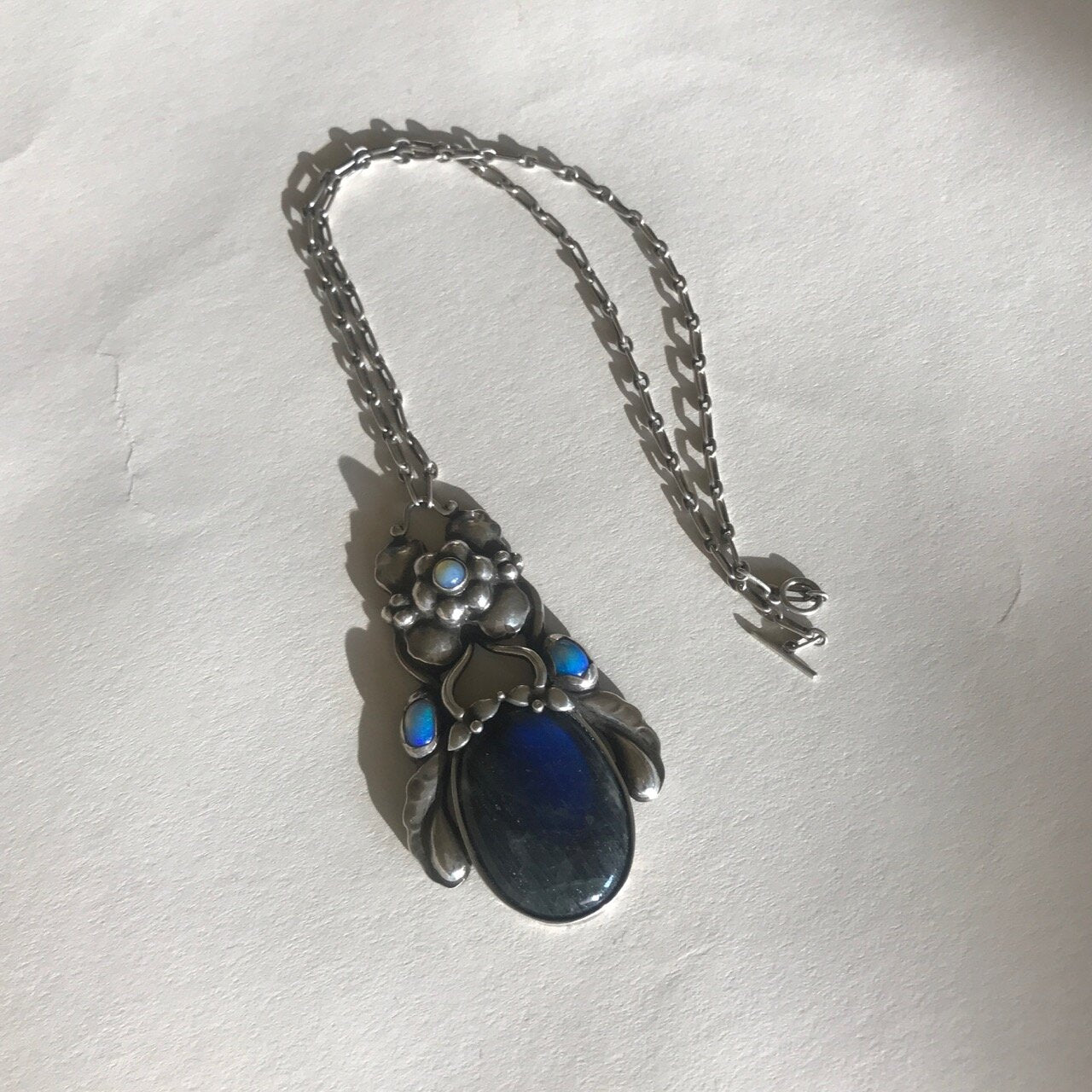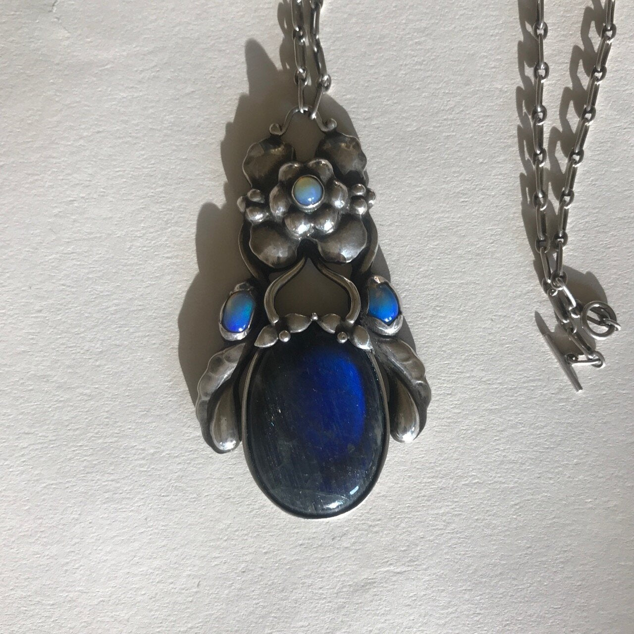 George Jensen 830 Silver Antique Pendant No 55 With Labradorite and Opals.