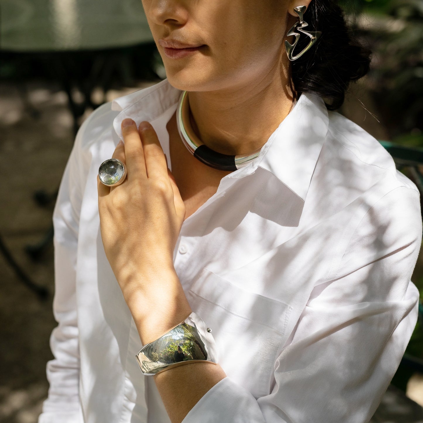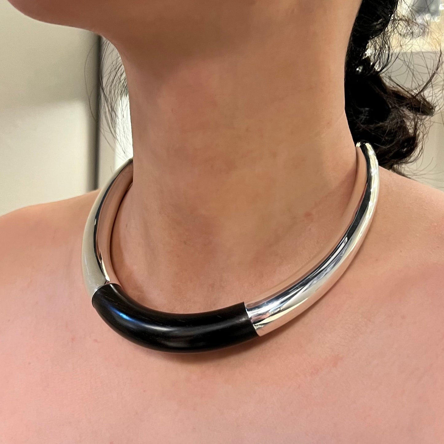 Georg Jensen Sterling Silver and Ebony “Aura” Neck Ring No. A29A by Anne Ammitzbøll