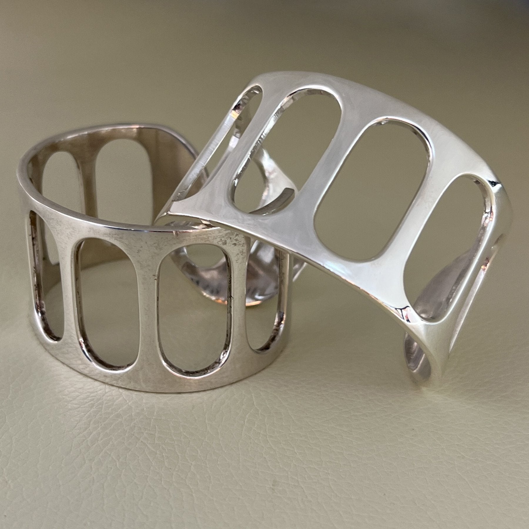 H. Pozzo French Silver Modernist Cuff Bracelet