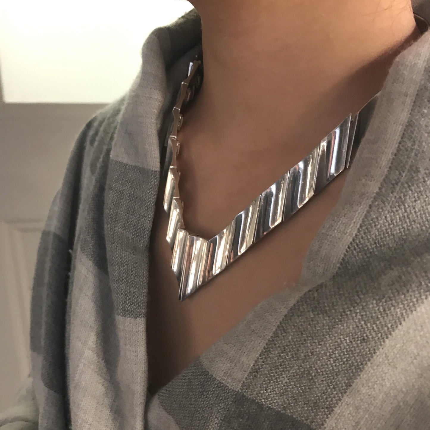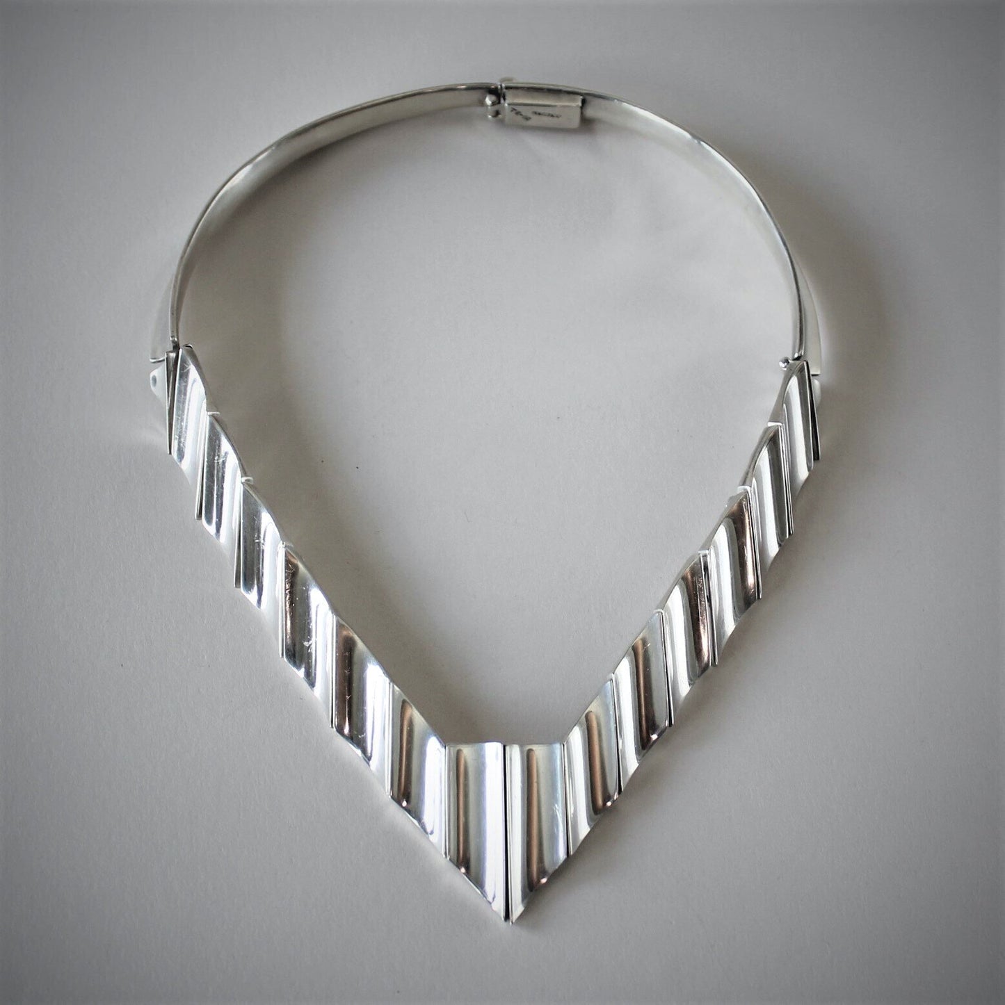 chevron articulated necklace, comfortable to wear, good weight, very good condition, make in Taxco Mexico.