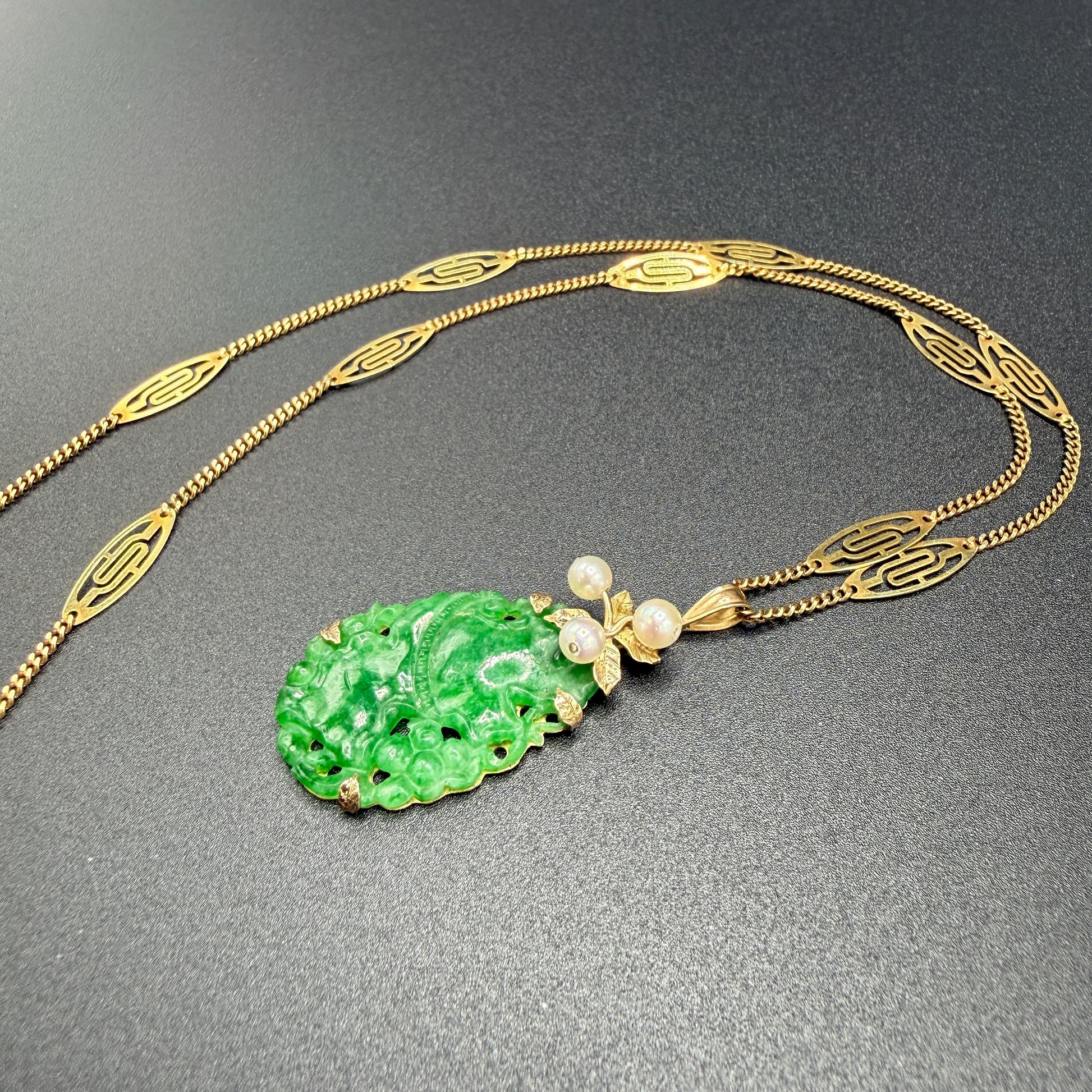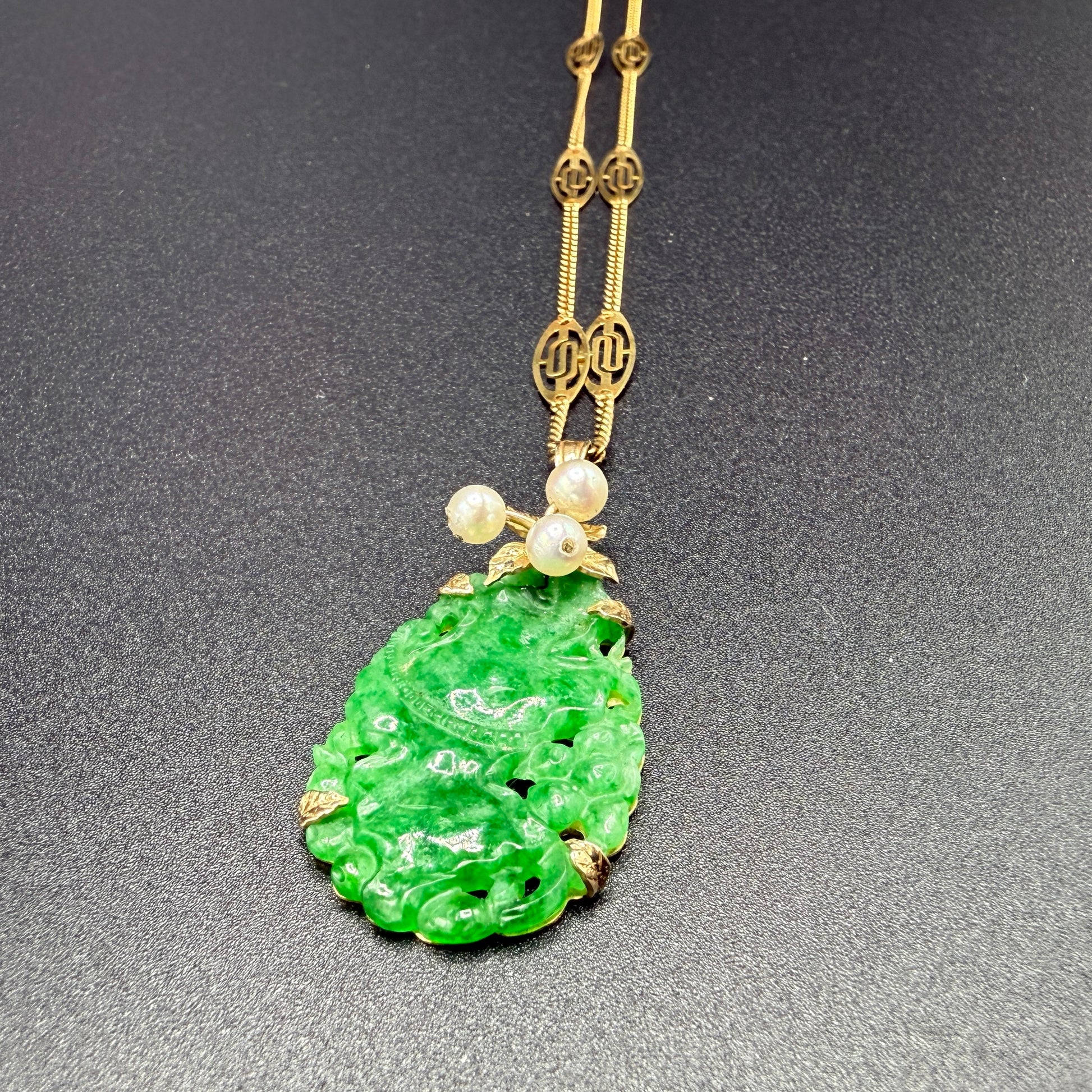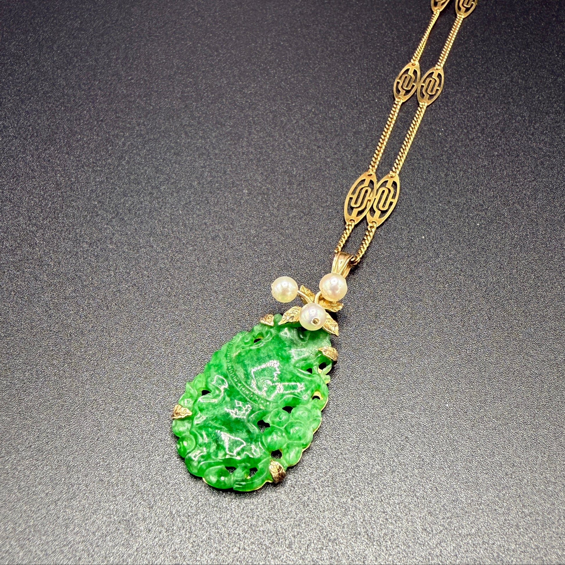 Ming's Teardrop Jade Pendant and 14k Gold Filigree Necklace