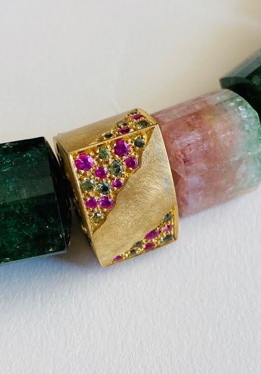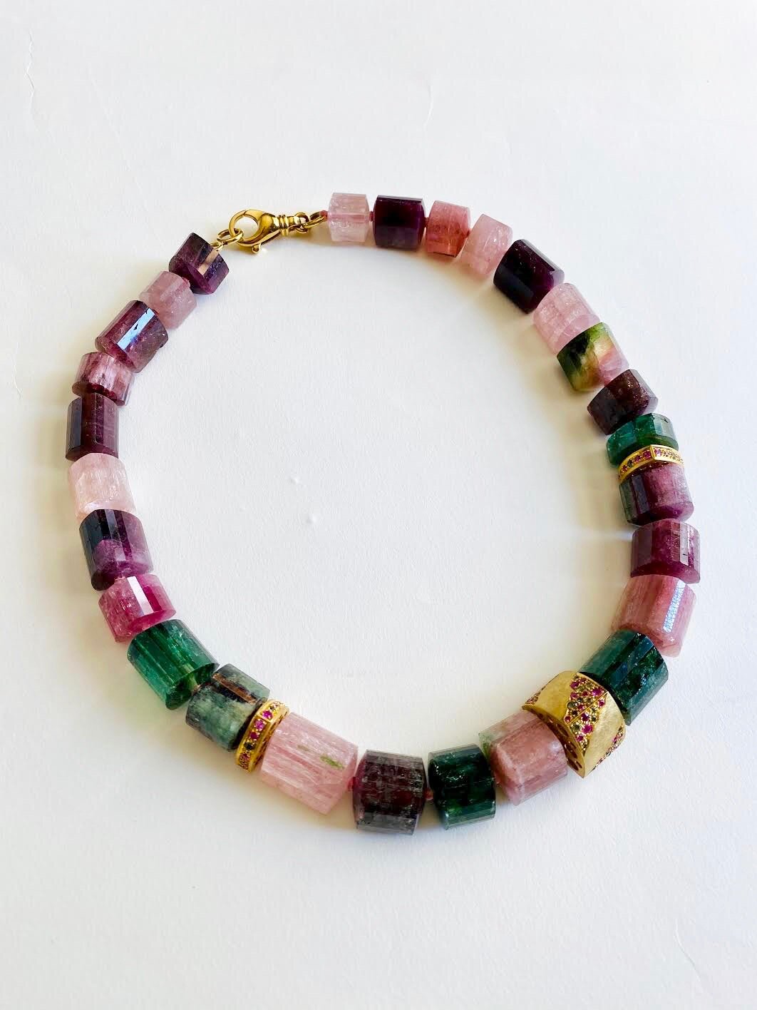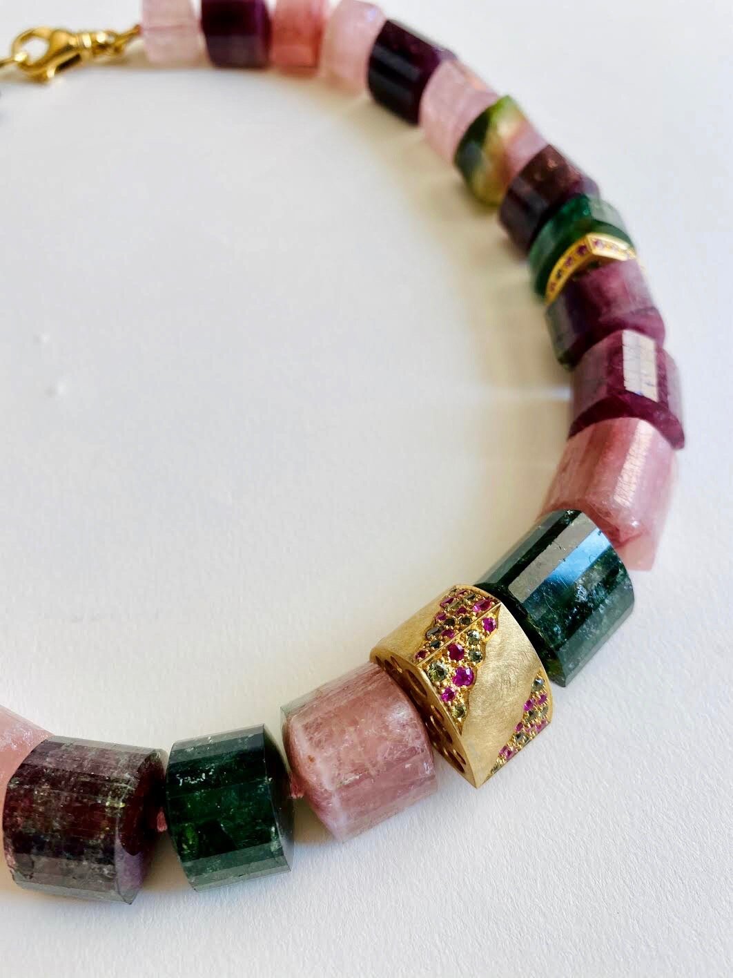 Natural Tourmaline Necklace with 18K Gold Segments with Pave Set Sapphires by Walter Dickhaut