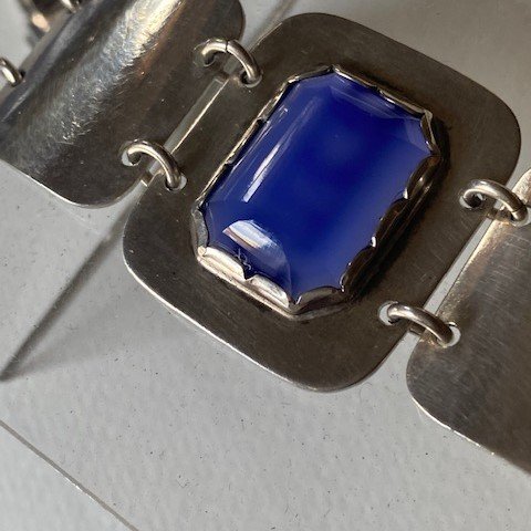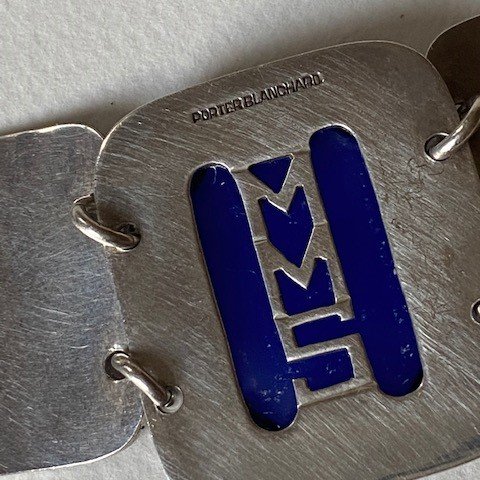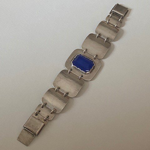 Estate Porter Blanchard Silver Bracelet with Blue Chalcedony