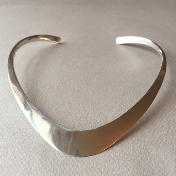 Beautifully tapered and completely hand wrought sterling silver neck ring.