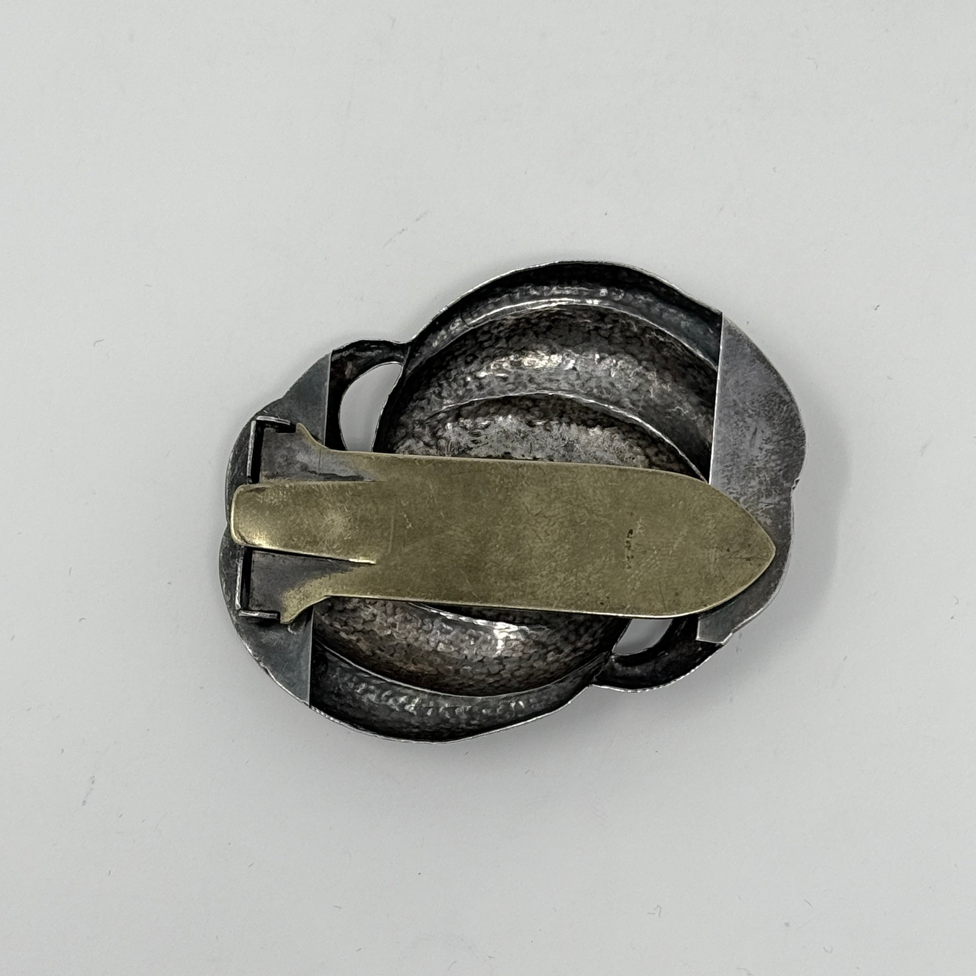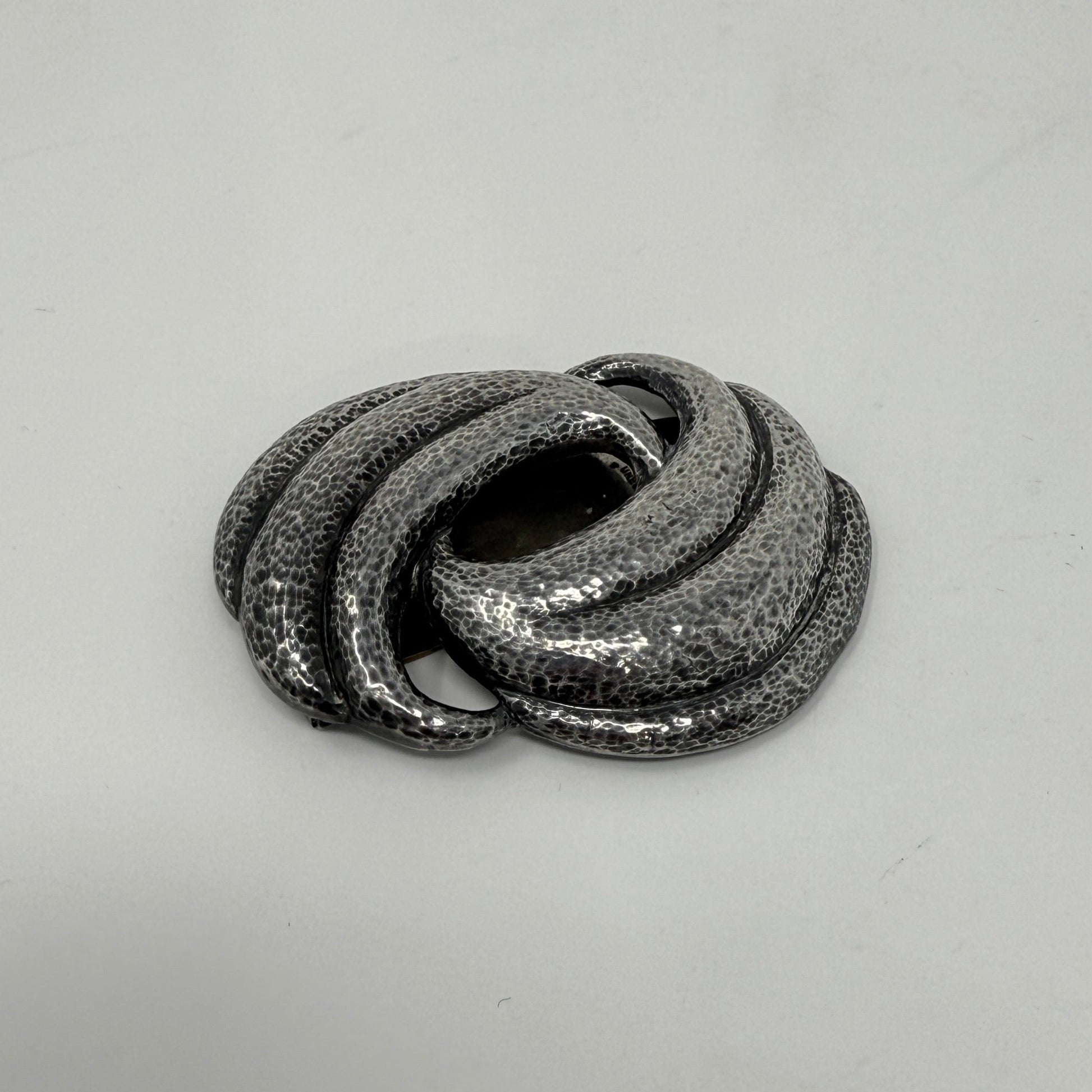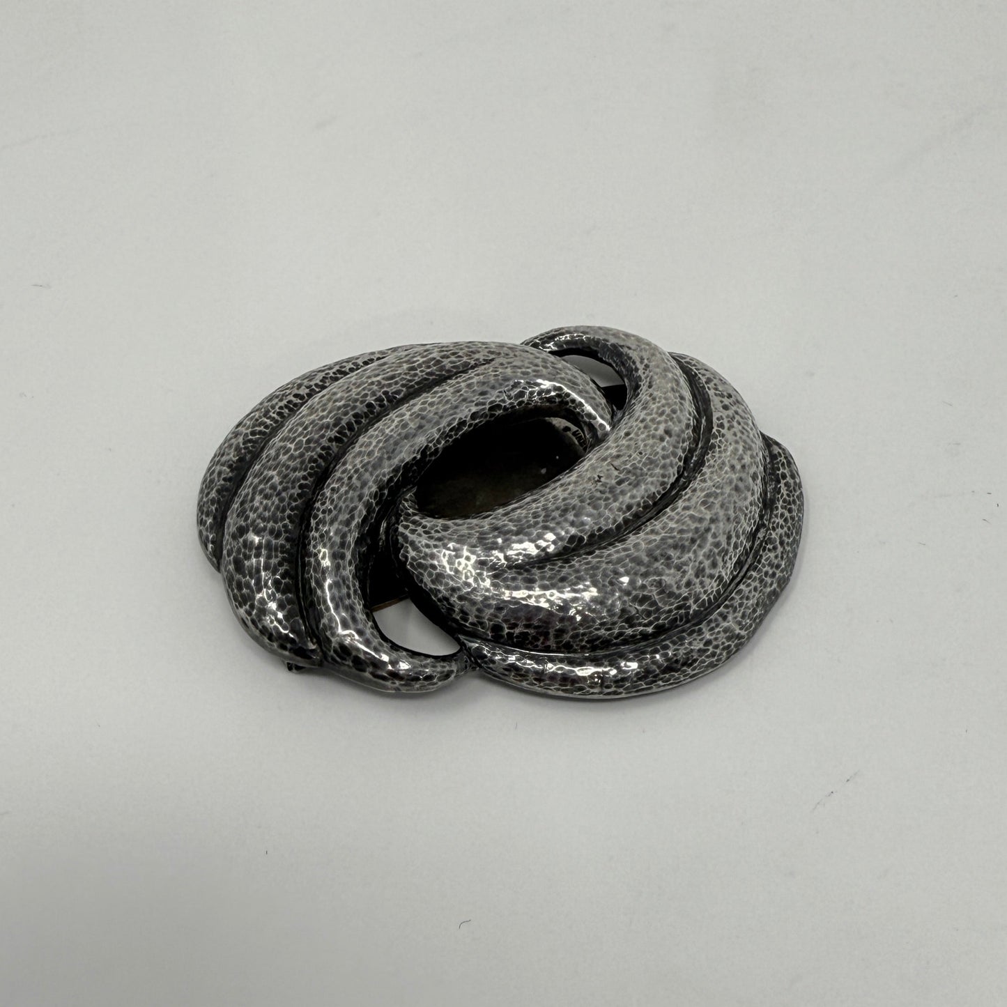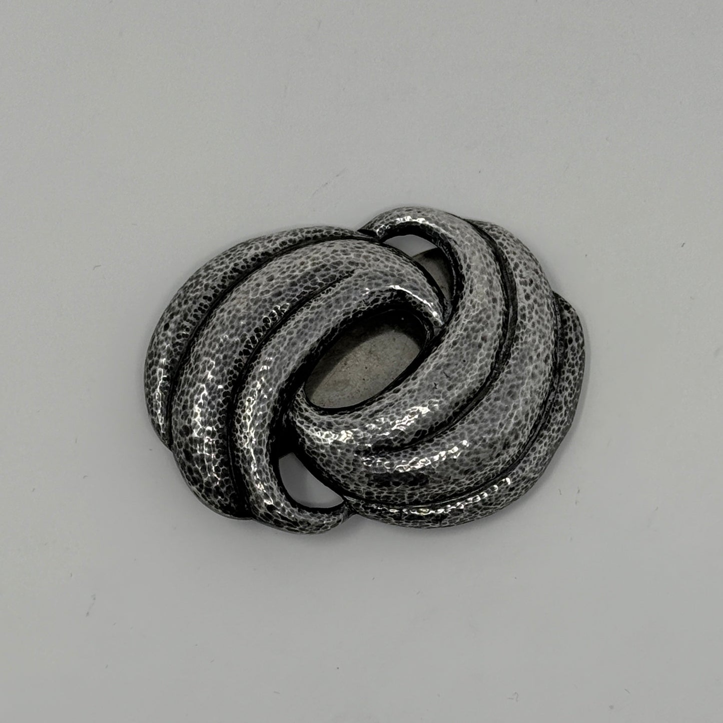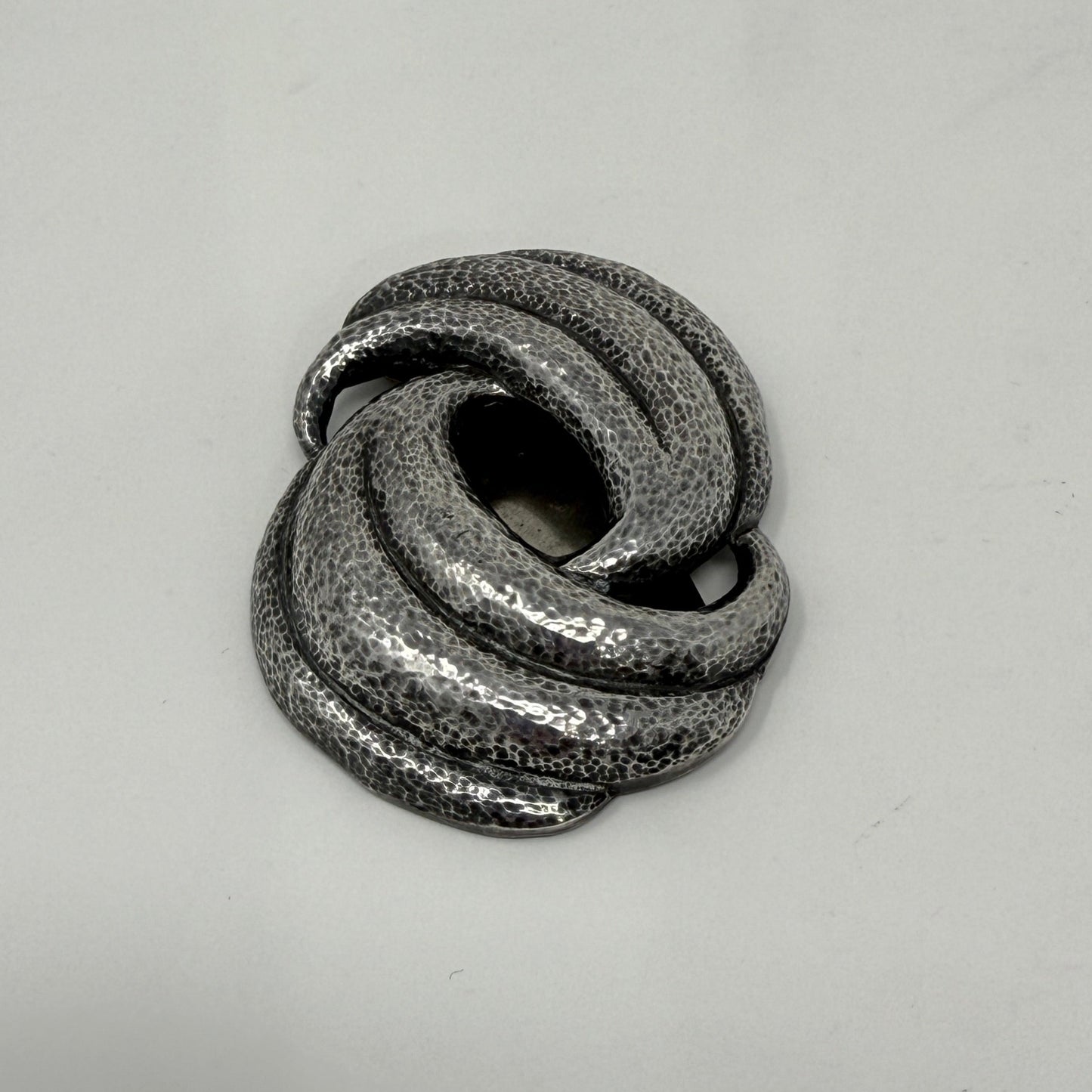 Textured Handmade Hand Hammered Repousse Interlocking Silver with Brass Clip