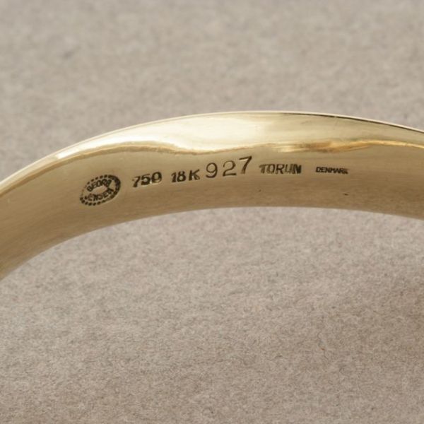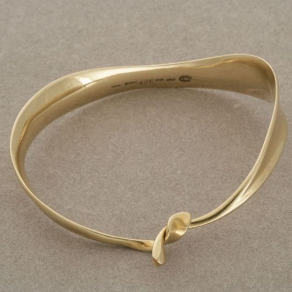 Georg Jensen 18 Kt gold bangle designed by Vivianna Torun. rare design. Opens for easy on and off. Very heavy .