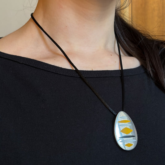 Estate Almond Shaped Hans Hansen Retrofuturist Silver Brooch with Enamel Inlay Designed By Bent Gabrielsen